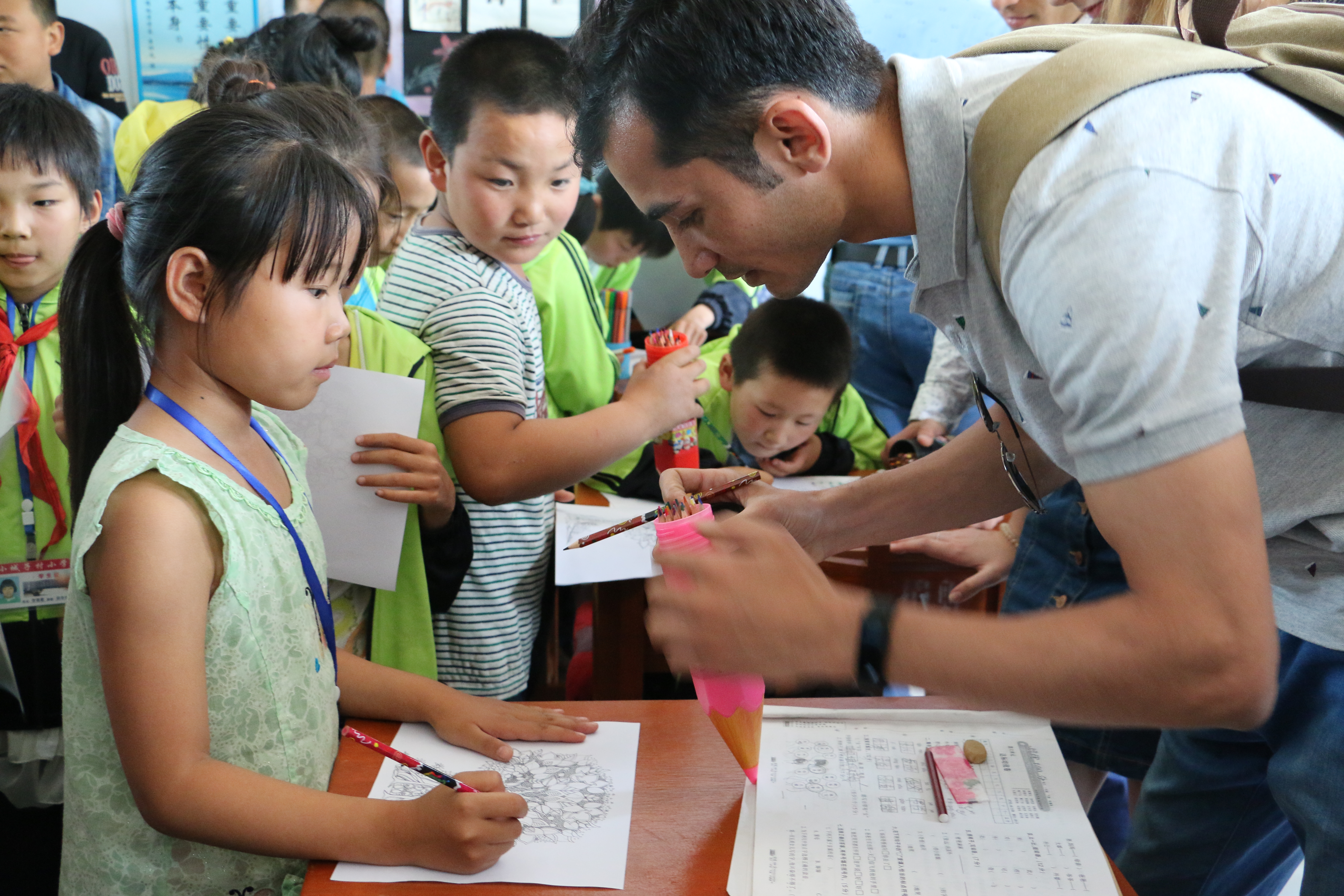 接下来,留学生们组织小朋友走到室外操场进行活动。留学生代表即兴教小朋友们英文歌曲,在留学生热情的带动下,从“Five Monkeys”, 拍手歌,到具有加勒比风情的舞蹈,小朋友们都跟着手舞足蹈,开心地笑着。小城子村小学的教职员工也表达了对bilibili下载