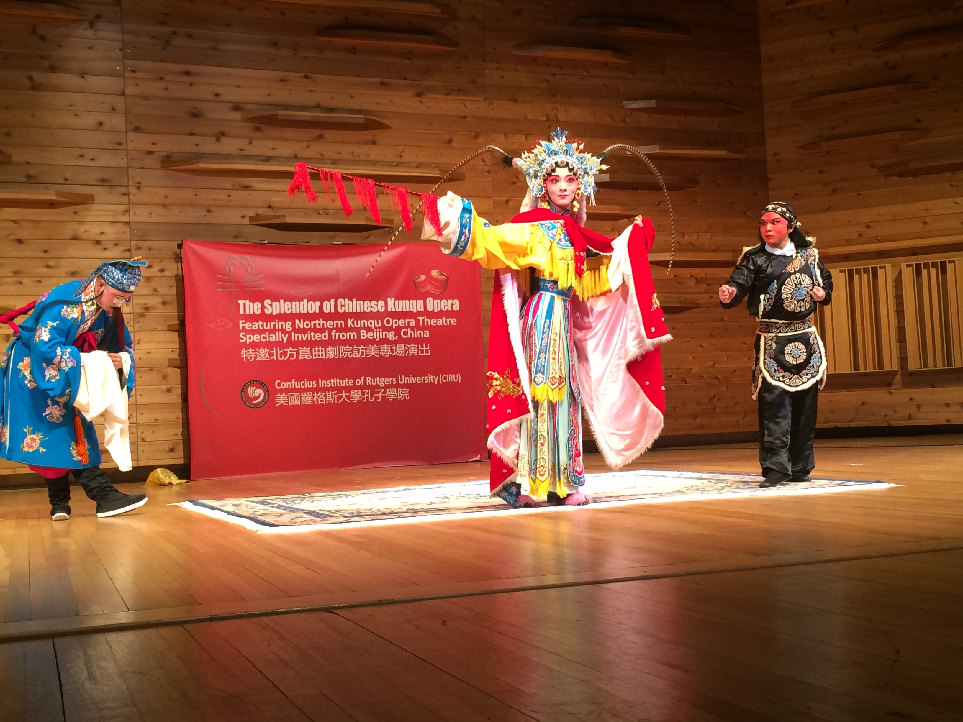 与美国罗格斯大学合作建立的孔子学院特邀以杨凤一为院长的北方昆曲剧院,进行了一场别开生面的专场演出。