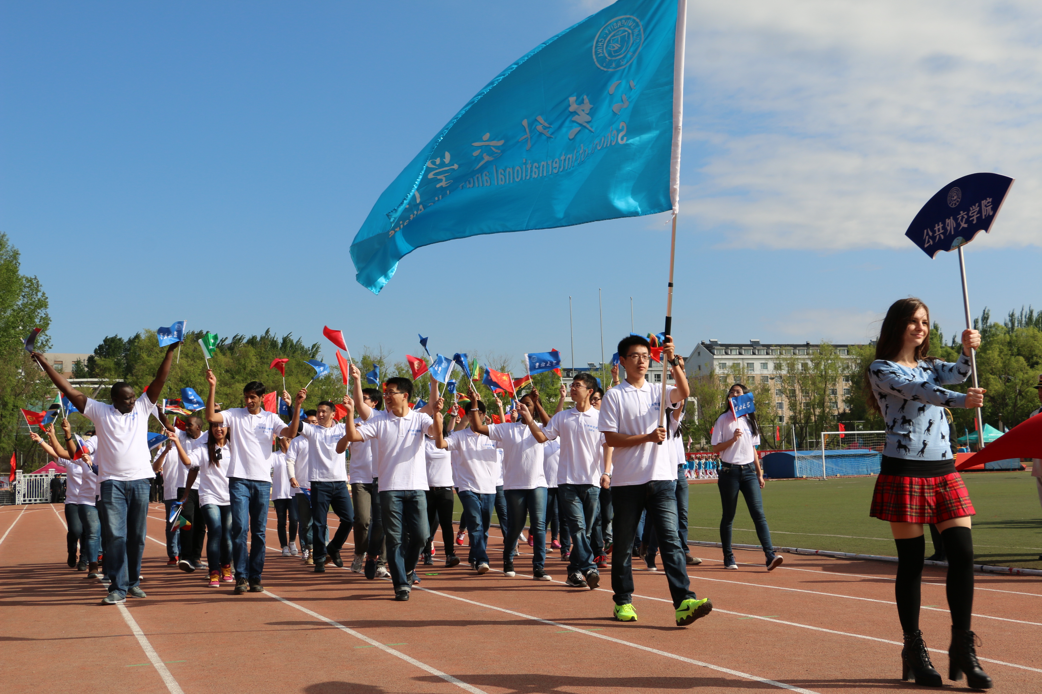 同学们起得比平时上课还要早,这全都是为了入场方队做准备。换上白底蓝字看起来高大上又小清新的院服,踏起飞扬的步伐,手拿各自国家的国旗和校旗,同学们激情洋溢地昂首走过主席台前。走在队首高举院牌的是来自乌克兰的留学生玛丽亚,她青春靓丽的身影引来观众席上的阵阵欢呼;旗手是体育委员梁鲁广,他飒爽的英姿显得分外帅气;方队的主体是由学院的首届中国本科生和留学生组成的,他们各自手挥国旗,迈着整齐地步伐,喊着激昂的口号,把 bilibili下载