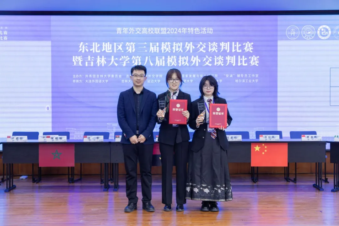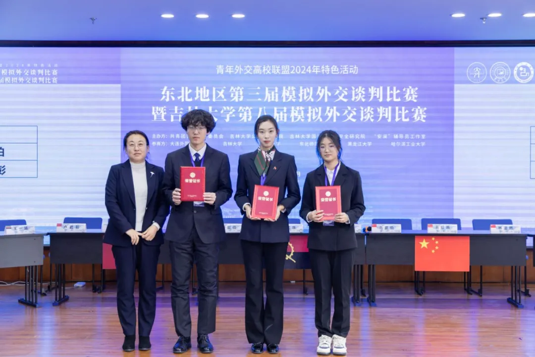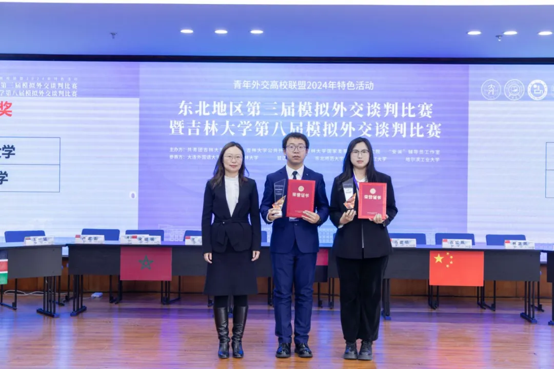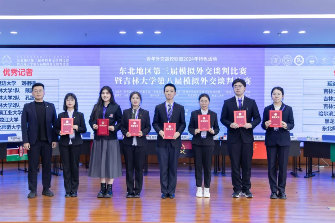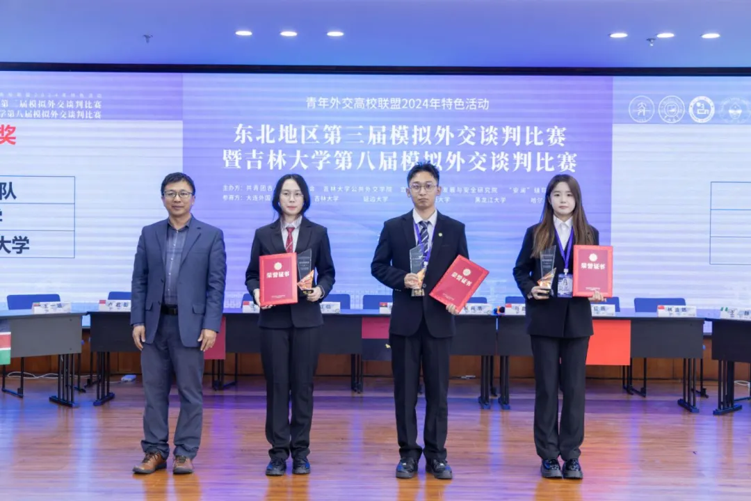 1队、延边大学代表队、大连外国语大学代表队获得荣誉团队奖。同时,宋晓瑜等7名选手获得“优秀谈判官”称号、卢君彭等3名选手获得“优秀新闻官”称号、刘相楠等7名选手获得“优秀记者”称号。