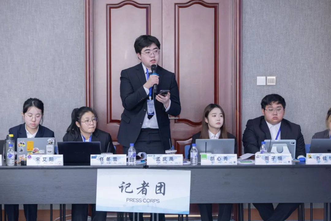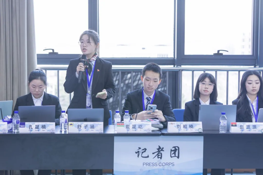 在接下来的谈判比赛中,各校谈判官坚定捍卫己方立场,凭借扎实的专业素养和精湛的谈判技巧,就中非经济合作议题进行了深入讨论;新闻官们在新闻发布会环节机智应对,坚守国家立场,以出色的临场反应能力纵横捭阖,代表本国人民发声;场下记者思维敏捷,提问一针见血。比赛期间的精彩较量和交流充分展示了青年学生对国家安全战略规划的明确把握与深刻理解,以及他们的政治素养、全球视野、责任担当。观众们目睹了非军事领域的国家博弈,也领略了参赛选手们的卓越风采与外交外事工作的独特魅力。此外,观众们热情参与了知识问答和随机抽奖等互动环节,为紧张的谈判氛围增添了一丝轻松和乐趣。