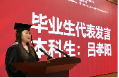 的求知岁月。面对当下“文科无用论”盛行,她直言时代焦虑,但强调人文素养是破局的关键。她以国际政治学理论为喻提出三点期许:接纳“现实主义”世界中个体有限性的同时,要心怀“自由主义”的理想之光,以“建构主义”精神主动构建人际连结。最后呼吁毕业生在复杂时代保持群体意识,追寻生命意义,以积极行动对抗不确定性,成为时代的见证者与建构者。