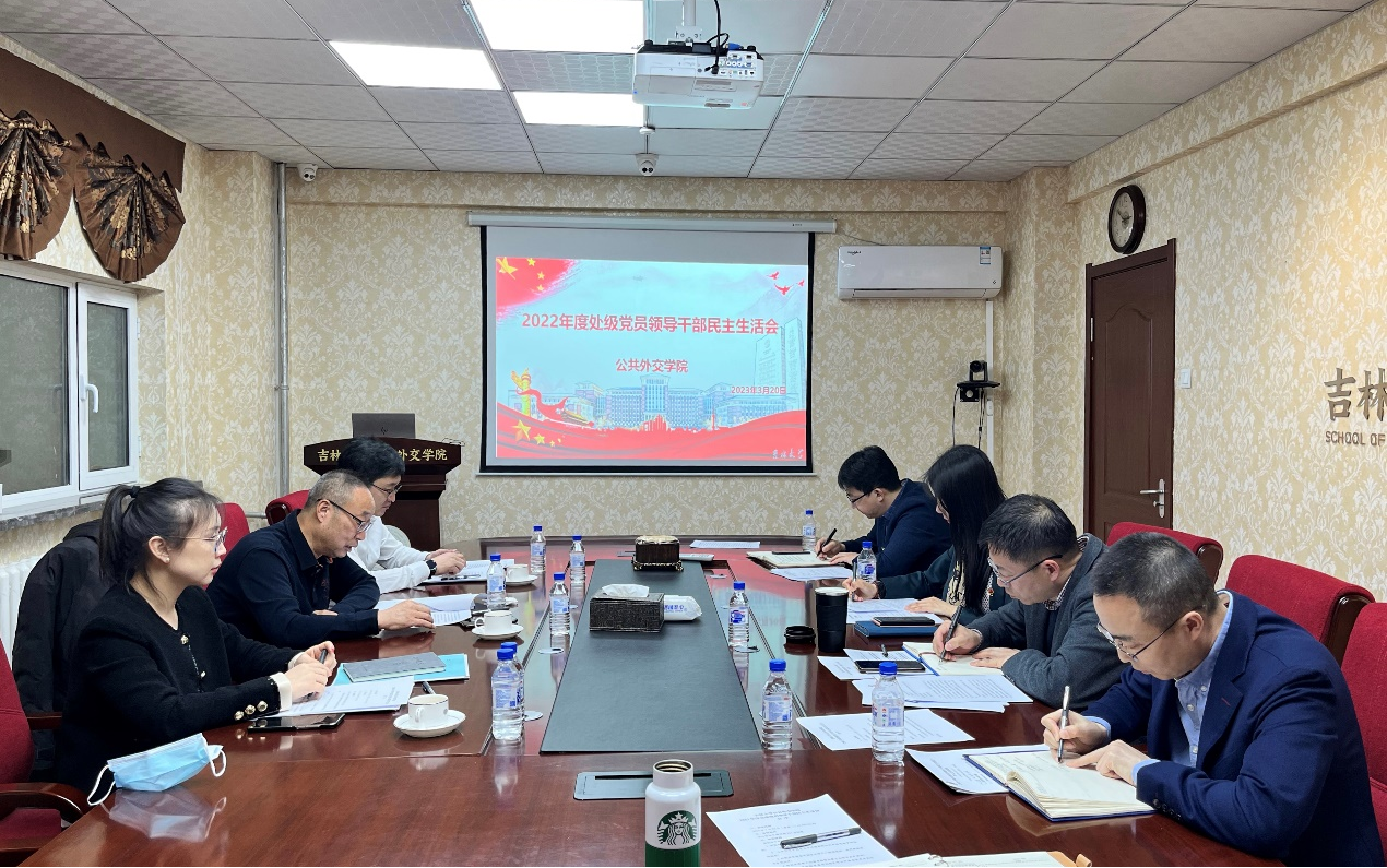 在吕振羽楼217会议室召开了2022年度处级党员领导干部民主生活会。学校党委第十四督导组组长唐立山同志、成员孙恒同志、联络员孟欢同志到会指导。学院处级党员领导干部参加会议,会议由党委书记杨民主持。