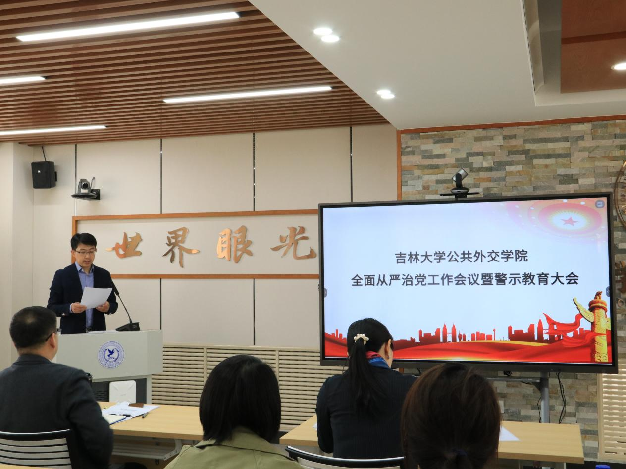 在吕振羽楼818会议室组织召开全面从严治党工作会议暨警示教育大会,学院领导班子全体成员、纪委委员及全体教职工参加了会议。会议由党委副书记兼副院长、纪委书记王力同志主持。