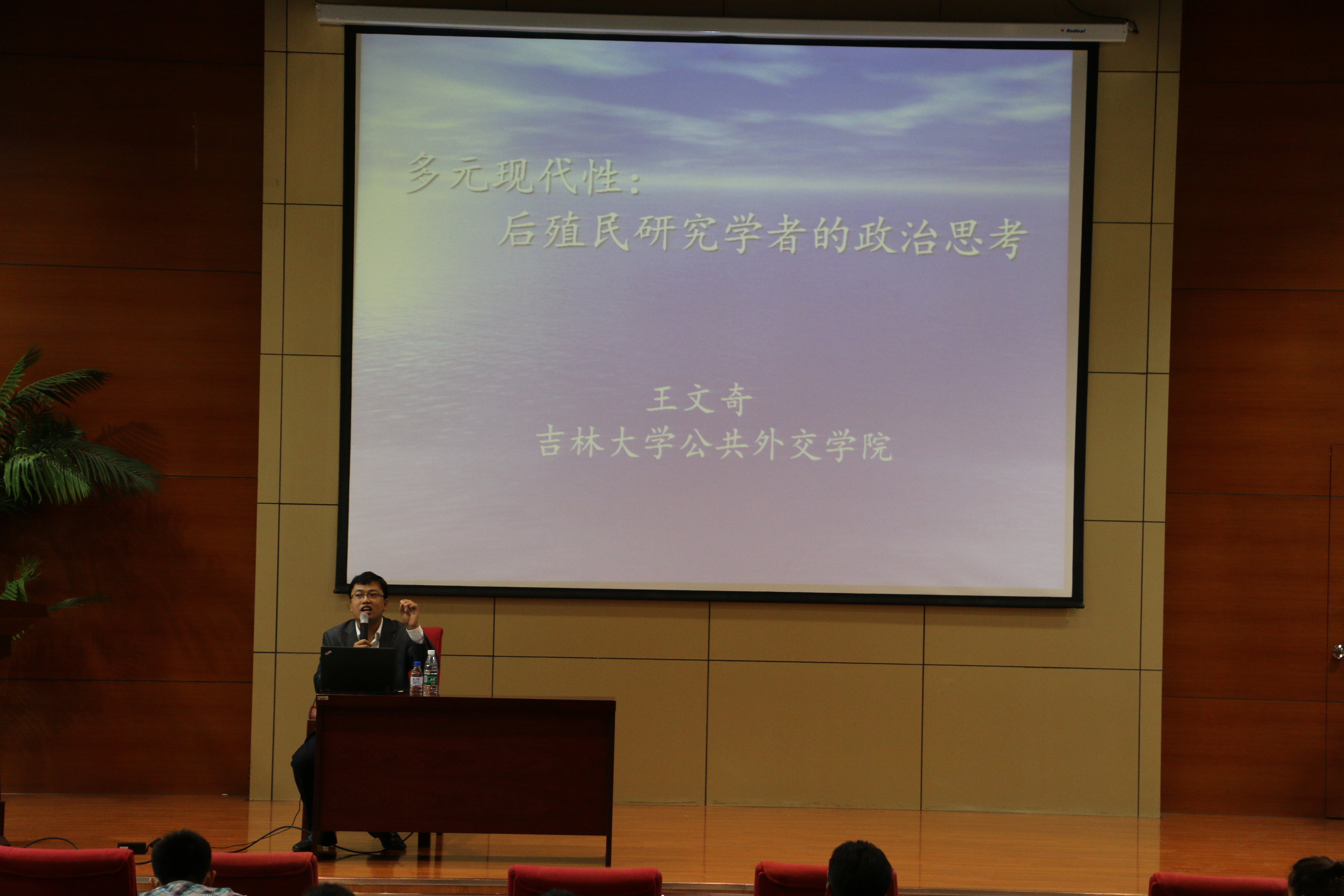 王老师从现代性叙事无处不在,西方中心论、线性发展史观潜移默化地影响着我们多方面思维定式出发,引出主题。本次讲座大致分为三个部分。第一部分是关于后现代与后殖民主义对现代性的反思,东方是经过东方化和东方学化的东方,是被西方叙事话语所塑造的东方。王老师以后殖民研究三位代表人物的著述为例,指出超脱简单的东西方二元对立思维,思考主体间性中的文化多元位移对我们打开视野具有积极意义。第二部分是关于后殖民研究一个重要流派——庶民研究学派的介绍。印度的庶民研究学派是一个重要的强调底层叙事、强调底层研究的学派,该学派通过具体的学术研究打破了精英垄断的单线叙事,努力形成复线叙事。第三部分重点以印度著名学者帕沙·查特吉的著述为例,讲述了政治社会、异化时间等概念,是对传统的公民社会、同质化时间等叙事方式的解构与重构,通过查特吉的具体论述展现了打破西方中心论叙事的切实可行的方式。