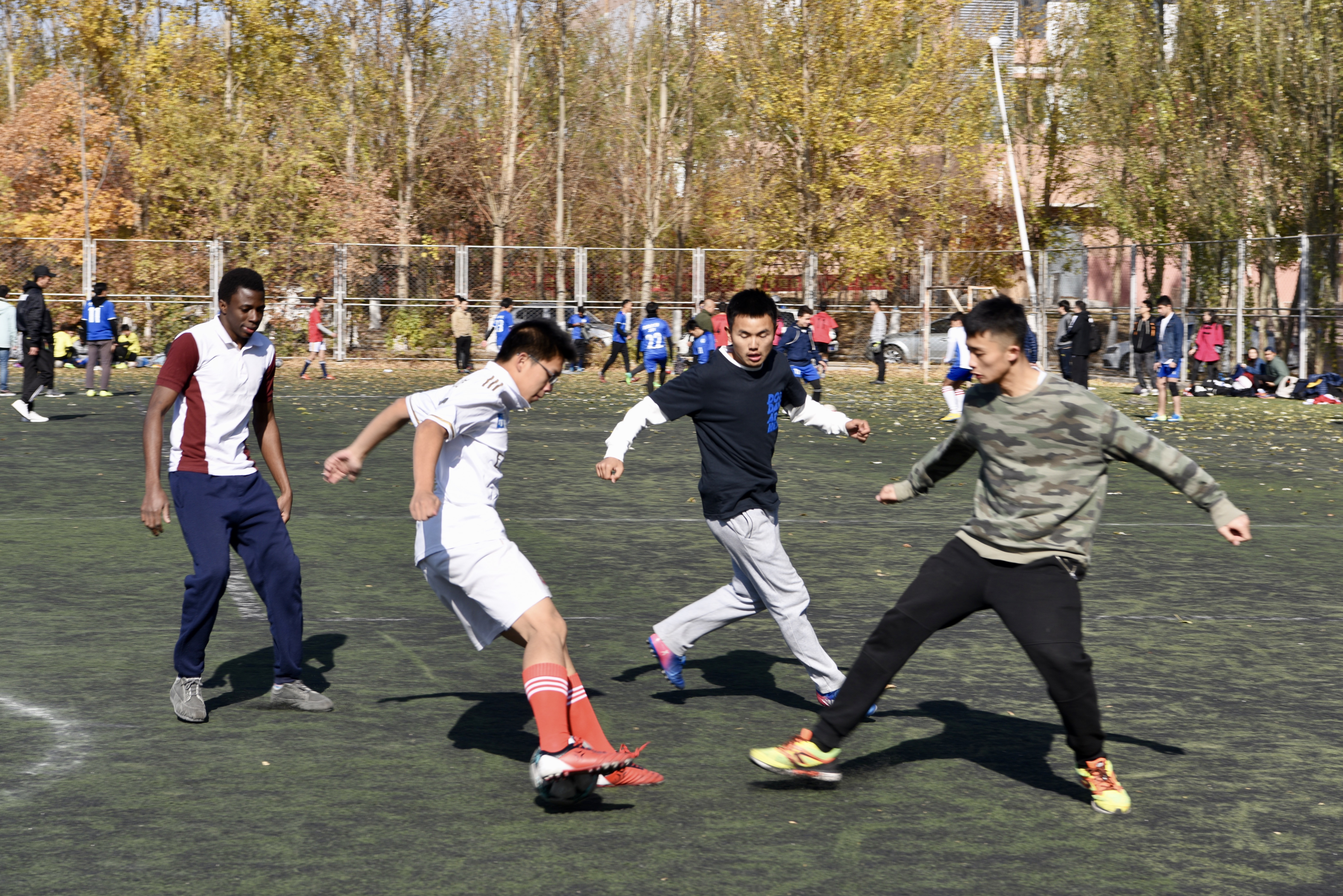 足球场上,队员们奋力拼搏,奔跑如离弦之箭,喊声振奋人心,场上场下,气氛热烈!一个个矫健的身影在足球场上迸发出青春的活力,输赢不重要,重要的是享受过程。这项比赛圆,满完成,体现了大家的毅力和团结,同时号召全院同学积极参与体育活动,锻炼自己。