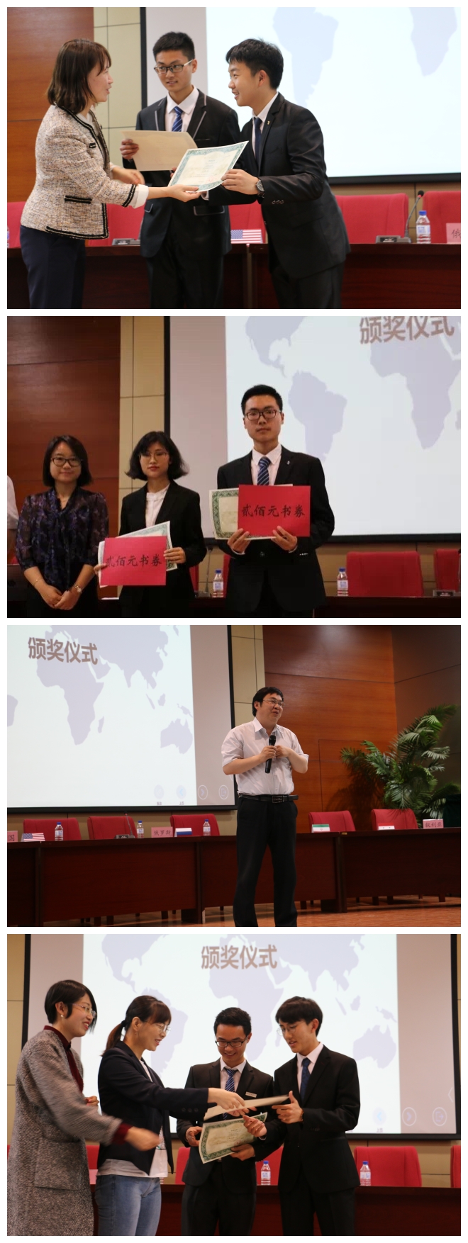 的成长。但比赛的专业性与同学们的专业意识仍需加强。丁老师首先肯定了同学们的表现,并向同学们解释了会谈与谈判的区别,同时就各国代表的表现分别进行了点评。最终依据评委老师的打分,评选出了最佳代表组合,最佳谈判手与优秀谈判手。