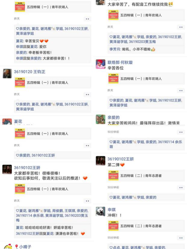 柳潇:由于疫情的原因,我们不能返校。但是呆在家里的日子却总想着我得做些什么,我们得做些什么。我们团支部通过推出“中国青年在行动”系列短视频,在宣传中国青年的责任与担当时,也能够切身的参与进去,展现我们自己的的家国情怀和世界眼光。