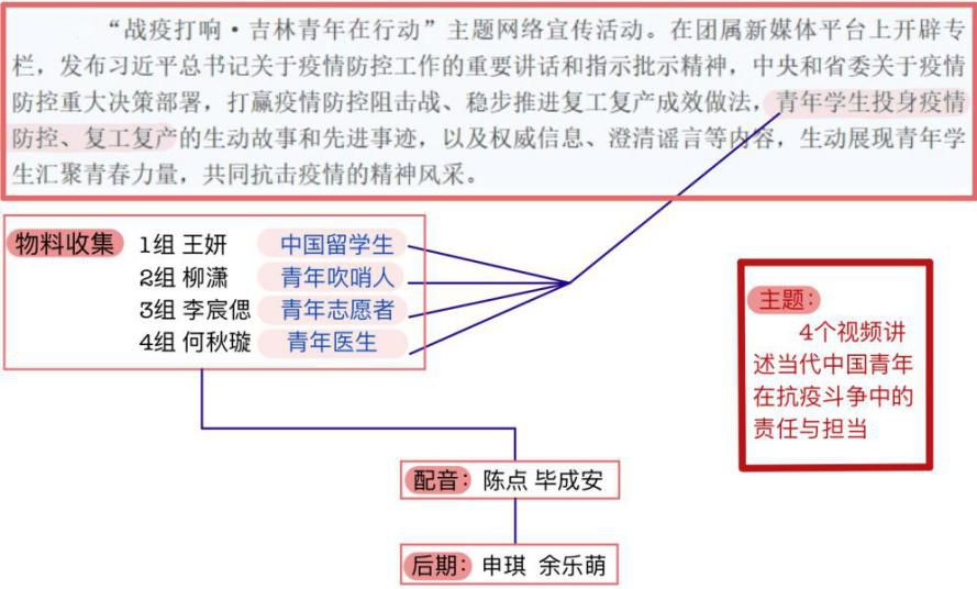本次活动,以青年吹哨人、青年志愿者、中国青年留学生、青年医者四个视角为切入点,分别制作短视频,讲述当代中国青年在抗疫斗争中的责任和担当。