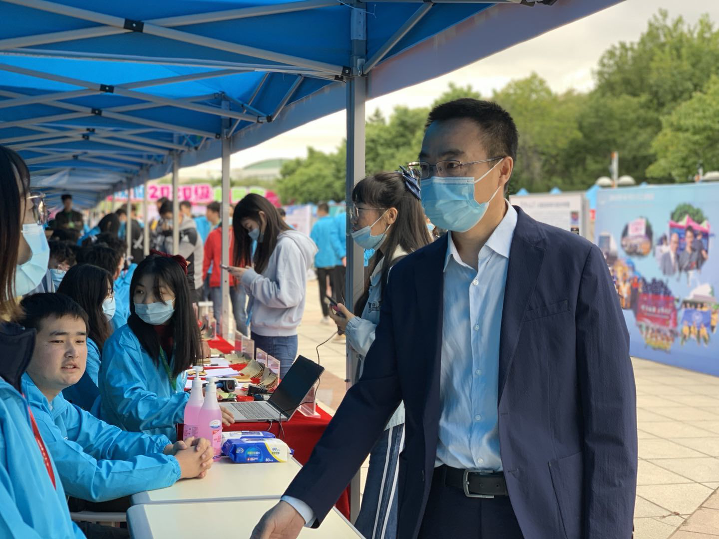 迎新现场,检查学院迎新准备情况,并对迎新志愿者表示亲切慰问。老师们还对此次迎新工作进行了详尽而完备的指导,提高了本次迎新工作的效率,也极大地鼓舞了志愿者们的工作热情。