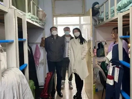 杨民书记、肖晞院长与辅导员单葆龙老师前往学生公寓进行走访工作。