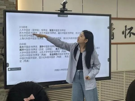在考研方面,韩京娜同学首先介绍了历史学考研的命题的方式有统考和自命题两种方式,南京大学为自命题,并列举了南大的考试内容和分流方向。接着她推荐了考研的时间规划,在9月前整理世界史框架,9月背名词解释和论述,12月针对弱势进行强化,可以通过画时间轴的方式来梳理历史事件。并且韩京娜同学推荐了相关书籍,还建议大家多多阅读南大历史系教授的论文。