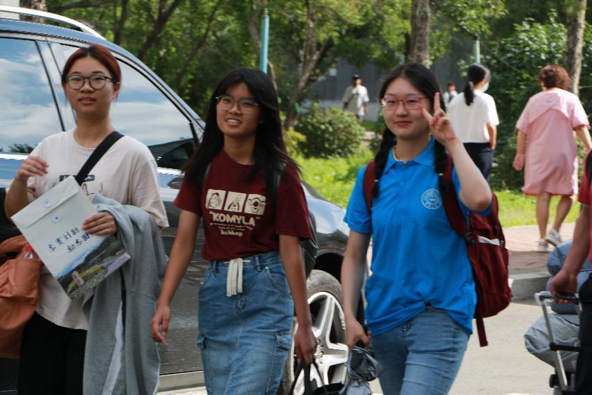 迎新现场,在志愿者引导下顺利完成身份审核、资料交接等工作,随后与父母一同游览校园,前往宿舍。在寝室接待站,22级的志愿者已准备就绪,为新生入住提供热心帮助。