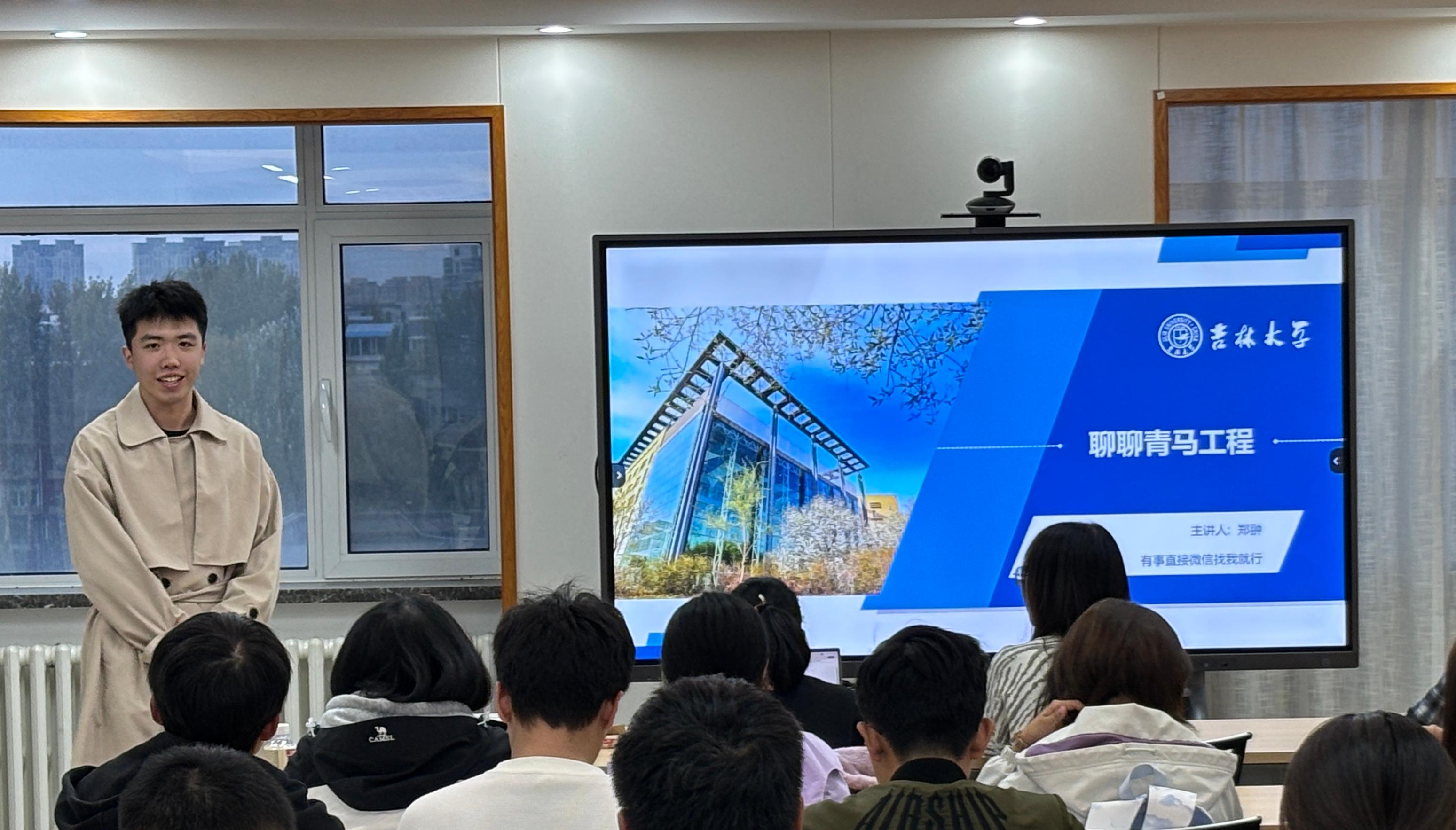 举办了本学期第二期“青春分享课堂”活动。活动由2023级本科生曲慧敏主持,邀请2021级本科生吕孝阳,2023级本科生郑翀分别与同学们分享关于“大创”、青马工程的经验。