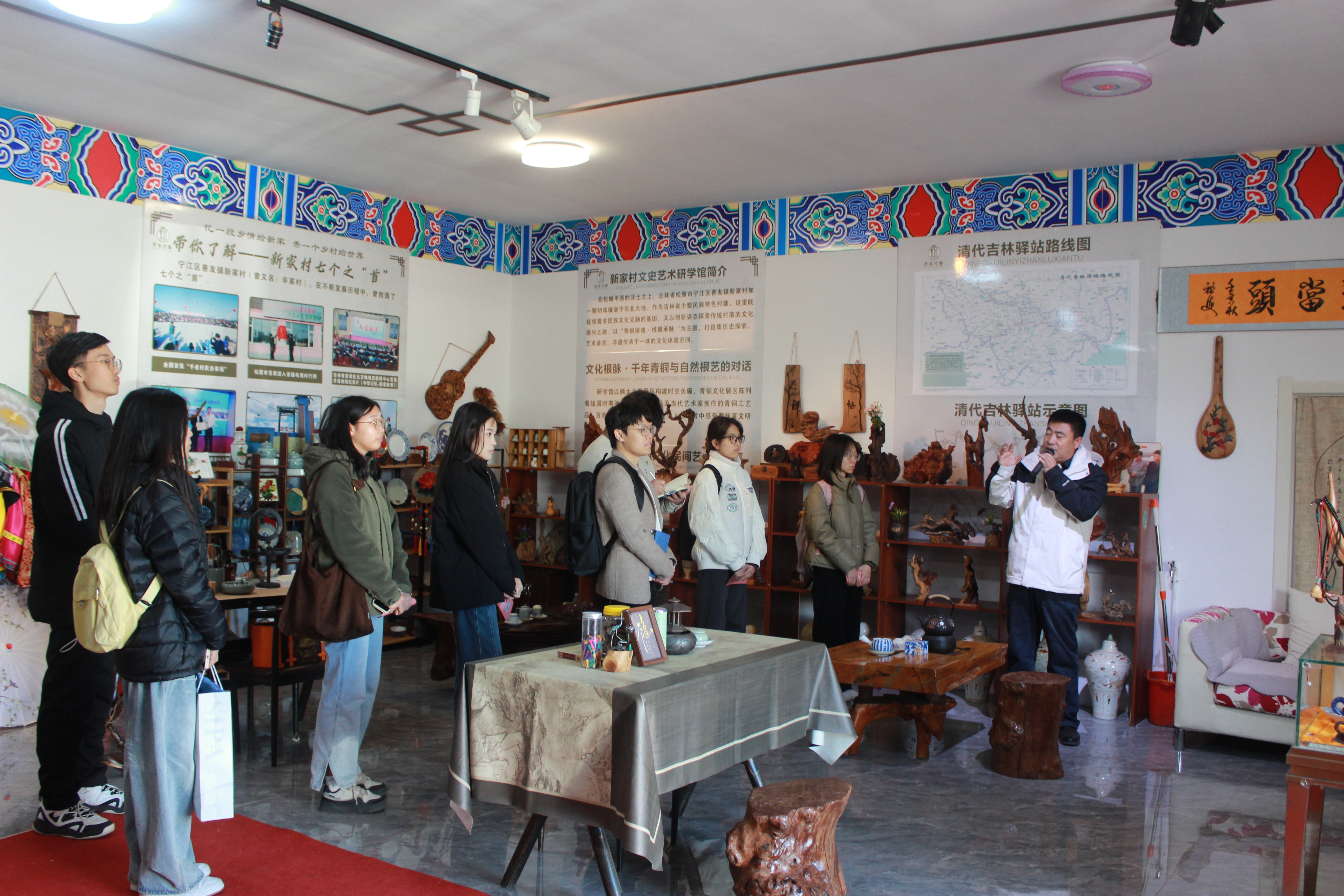在新家村张洪波书记的引导下,师生们沉浸式走访调研。张书记如数家珍地介绍村里如何以满族文化为纽带,推动乡村治理、发展特色产业、改善生态环境、促进民族团结。在这里,基层治理的每一个细节,都成为维护国家安全的生动注脚。