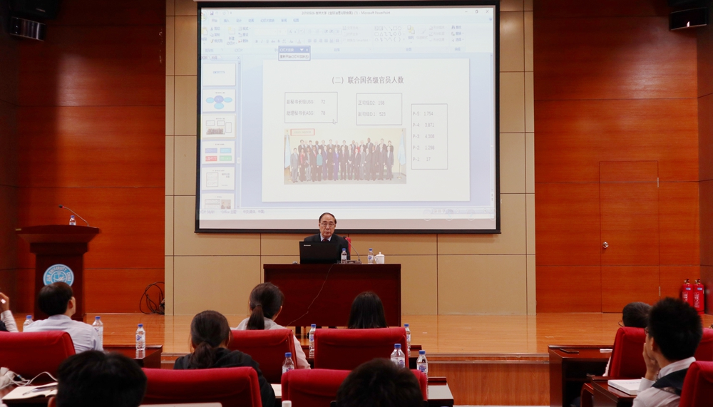 吴红波以联合国的成立和发展历史为切入点,向同学们阐明了联合国存在的必要性及其主要任务,并深入分析了当前全球治理的发展趋势。吴红波指出,中国在以习近平总书记提出的“构建人类命运共同体”的战略思想指引下,为全球治理做出了突出贡献,在倡导共建美好世界、维护世界和平与正义、促进南南合作、推动全球可持续发展等方面,坚定不移走和平发展道路,促进构建和谐发展的全球治理体系。
