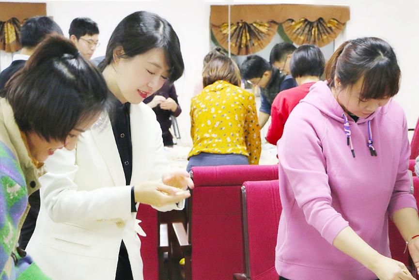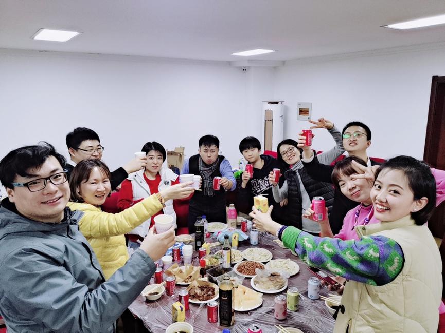 全体教职员工齐聚一堂,包饺子喜迎新春。