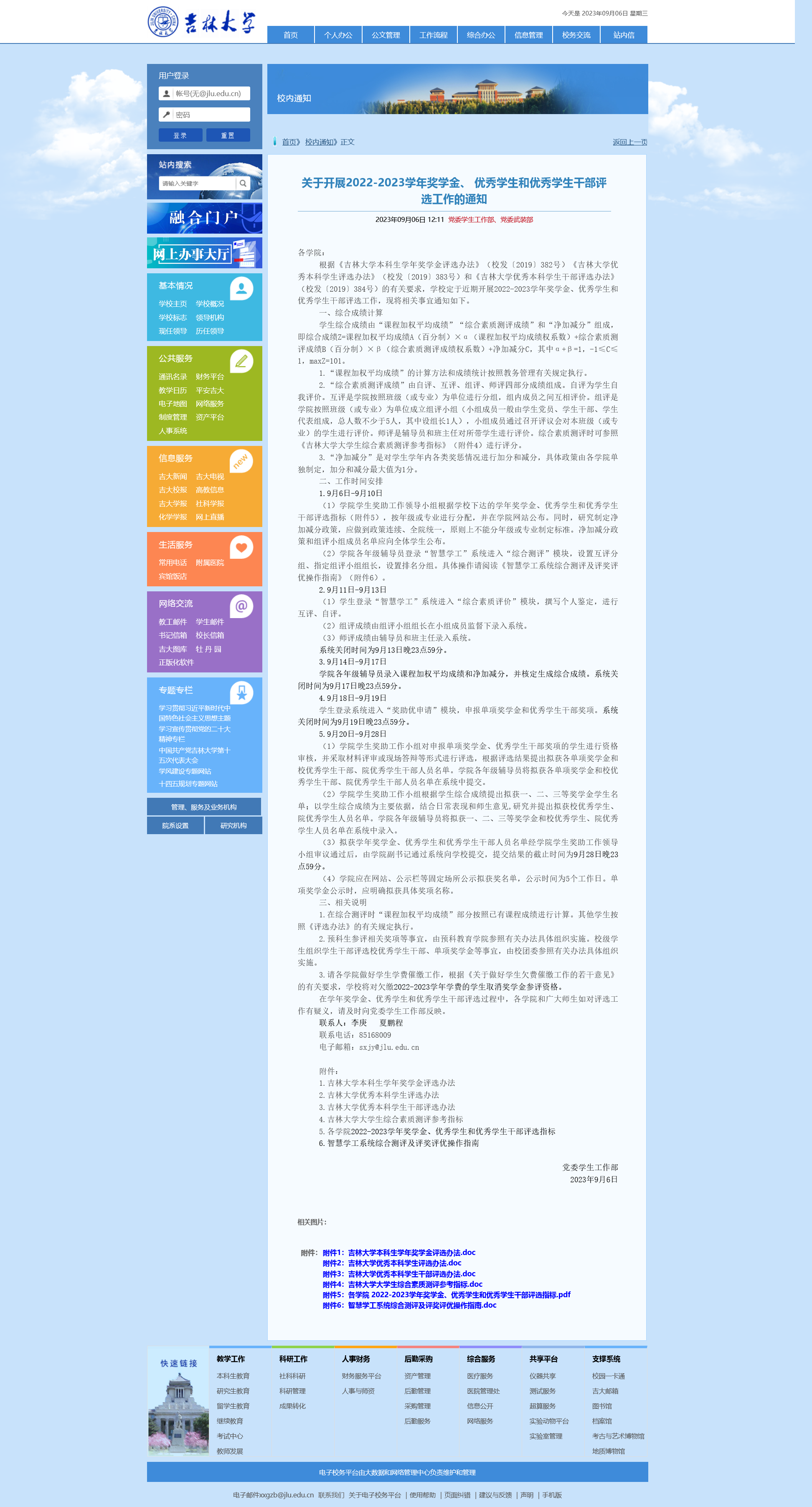 学院各年级辅导员录入课程加权平均成绩和净加减分,并核定生成综合成绩。系统关闭时间为9月17日晚23点59分。