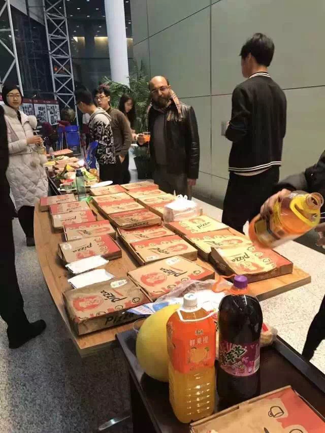 晚会结束后,师生们在西侧大厅举行冷餐会,披萨、鸡翅、薯条各式主食、饮品和零食琳琅满目,令人食欲满满,胃口大开。享受美食的同时,师生相互交流,场面热闹,为冬夜带了一抹温暖。