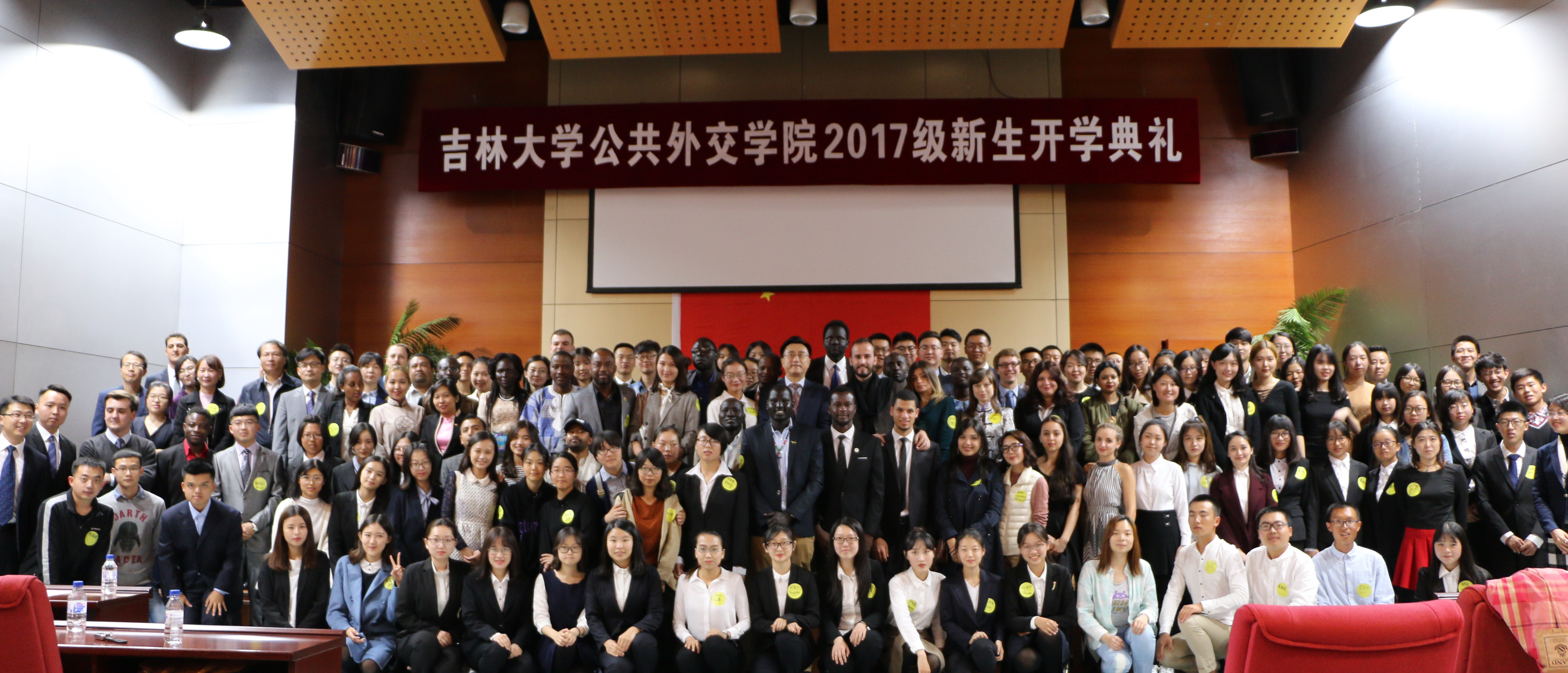院长刘德斌、副院长王铁臣、副院长孙兴杰、学院全体教师、中外学生近300人参加了开学典礼。典礼由学工办主任王力主持。