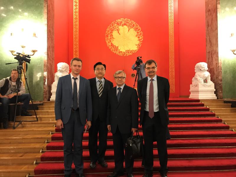 9月29日晚,刘德斌应邀参加了中国驻俄罗斯大使馆举行的中华人民共和国建国六十八周年国庆招待会,与中国驻俄罗斯相关机构的代表和俄罗斯同行朋友进行了广泛的交流。