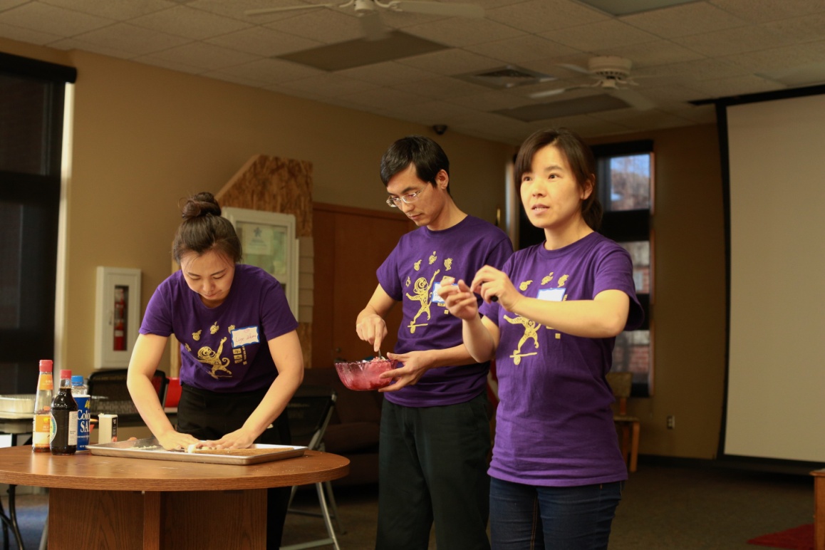 陆翔兴院长首先对堪萨斯州立大学孔子学院的机构、人员和宗旨做了简单的介绍,感谢大家对于孔院组织的中国文化活动的热心参与,并对于举办此次活动目的及孔院的中文课程等进行了说明。活动由饺子文化介绍、饺子的构成要素、饺子做法的演示、包饺子体验、品尝和交流等几部分组成。参加者兴致勃勃的动手和面、擀皮、包饺子,并不时的询问与饺子相关的文化知识;孔子学院志愿者身着带有孔子学院标志的T恤衫,与参加者进行了充分的交流和互动。