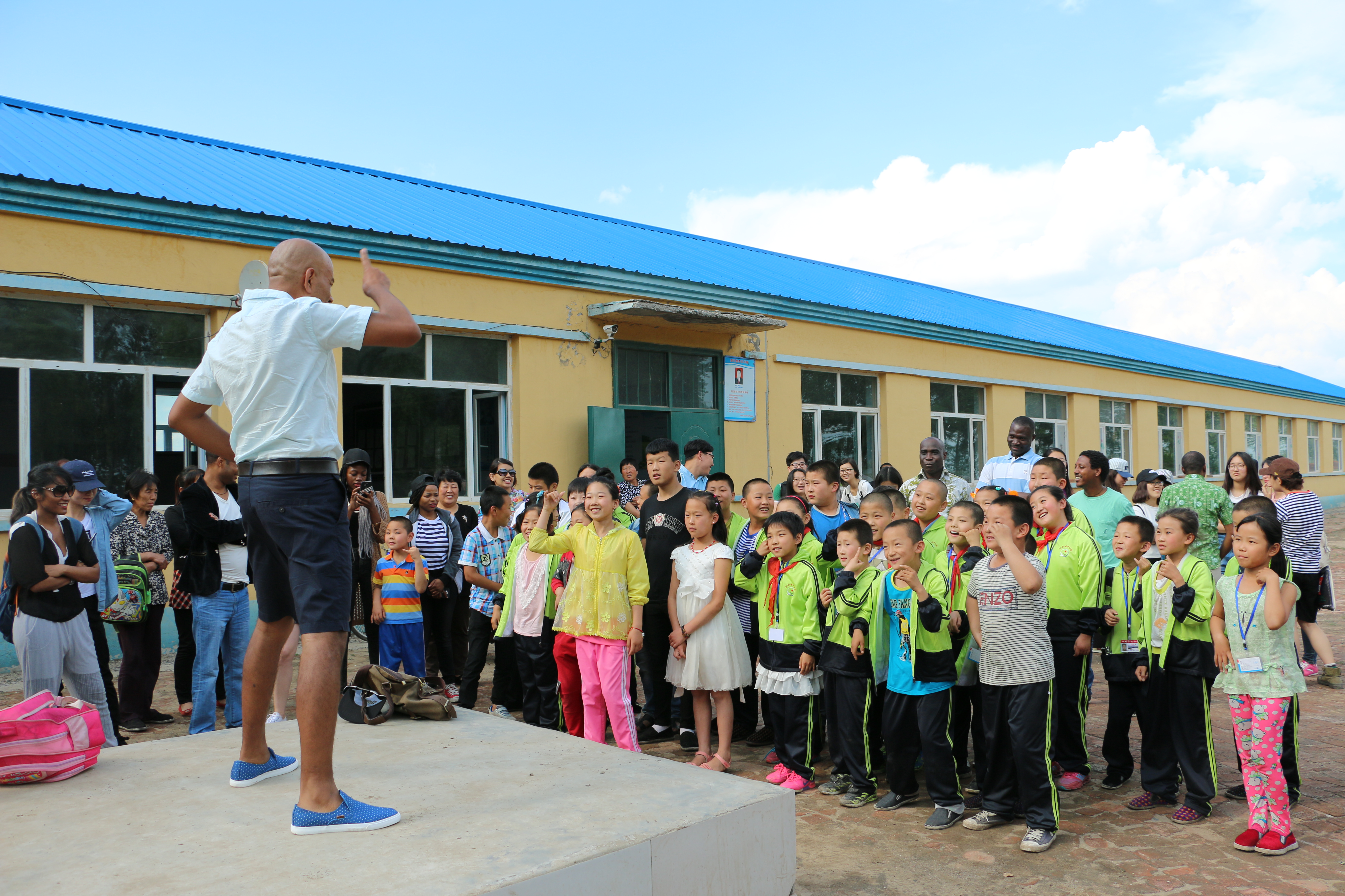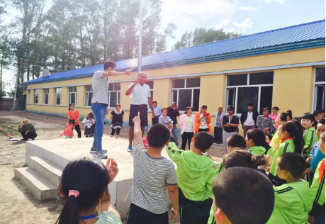 接下来,留学生们组织小朋友走到室外操场进行活动。留学生代表即兴教小朋友们英文歌曲,在留学生热情的带动下,从“Five Monkeys”, 拍手歌,到具有加勒比风情的舞蹈,小朋友们都跟着手舞足蹈,开心地笑着。小城子村小学的教职员工也表达了对bilibili下载