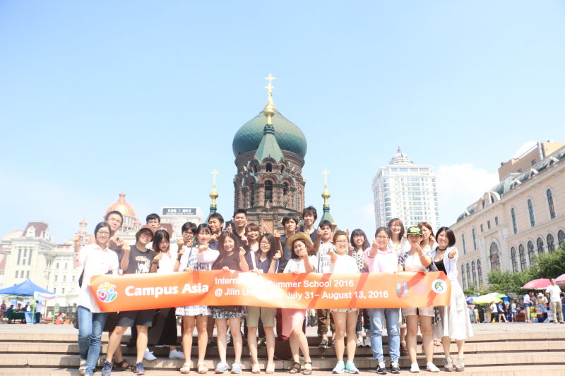 为学生们安排了哈尔滨市、伊通满族自治县以及长春市内和周边的诸多游览路线。在哈尔滨市,学生们共同观赏了美轮美奂的市内冰灯及雕塑,在炎热的夏季感受到了哈尔滨冬日独有的的寒意。此外,同学们还品尝了诸多东北特色美食,并为他们详细地介绍了本地区独有的风土人情,进一步推广了地区的特色文化。