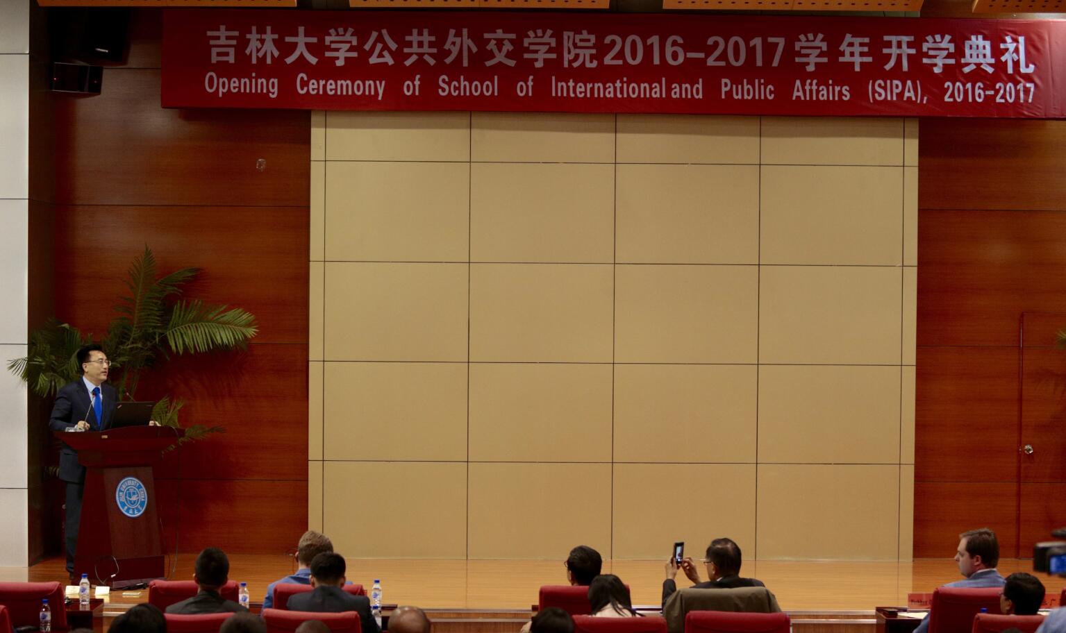 院长刘德斌教授发表了热情洋溢的讲话,他特别强调随着经济全球化和社会信息化的深入,不同文化和社会之间的互动越来越直接和频繁,国际关系的形态和性质都在发生变化,进入了“公共外交时代”。他勉励在坐的各国学生既要有“家国情怀”,也要有“世界眼光”,从入学开始就学习做一名文化交流的使者,迎接这个动荡不安的世界所面临的挑战。