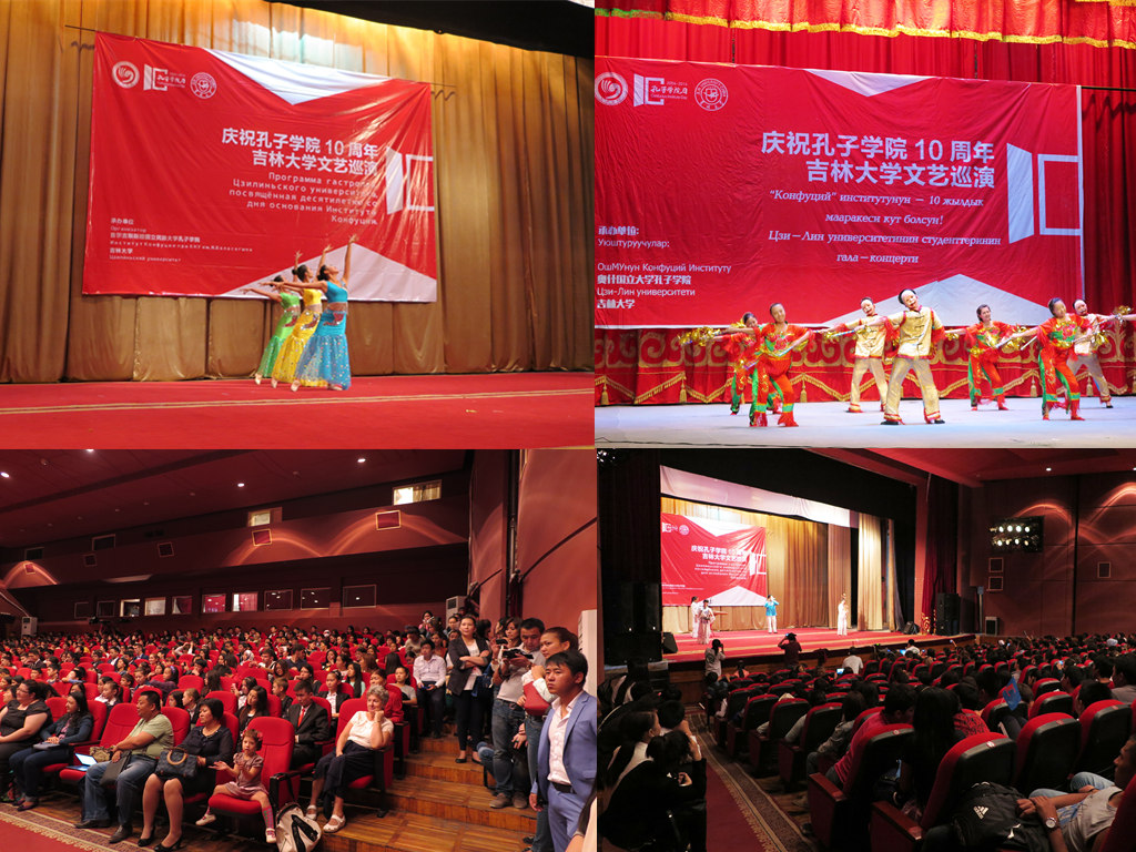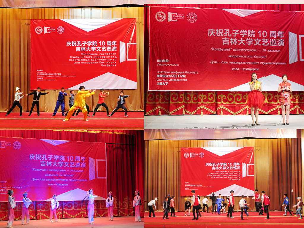 巡演团一行19人,由团委书记姚毓春带领,于9月20日—9月30日成功访问了哈萨克斯坦欧亚大学孔子学院、哈萨克斯坦卡拉干达国立技术大学孔子学院、吉尔吉斯斯坦比什凯克人文大学孔子学院、吉尔吉斯斯坦国立民族大学孔子学院、吉尔吉斯斯坦奥什国立大学孔子学院,进行了5场演出,圆满完成了巡演之旅。
