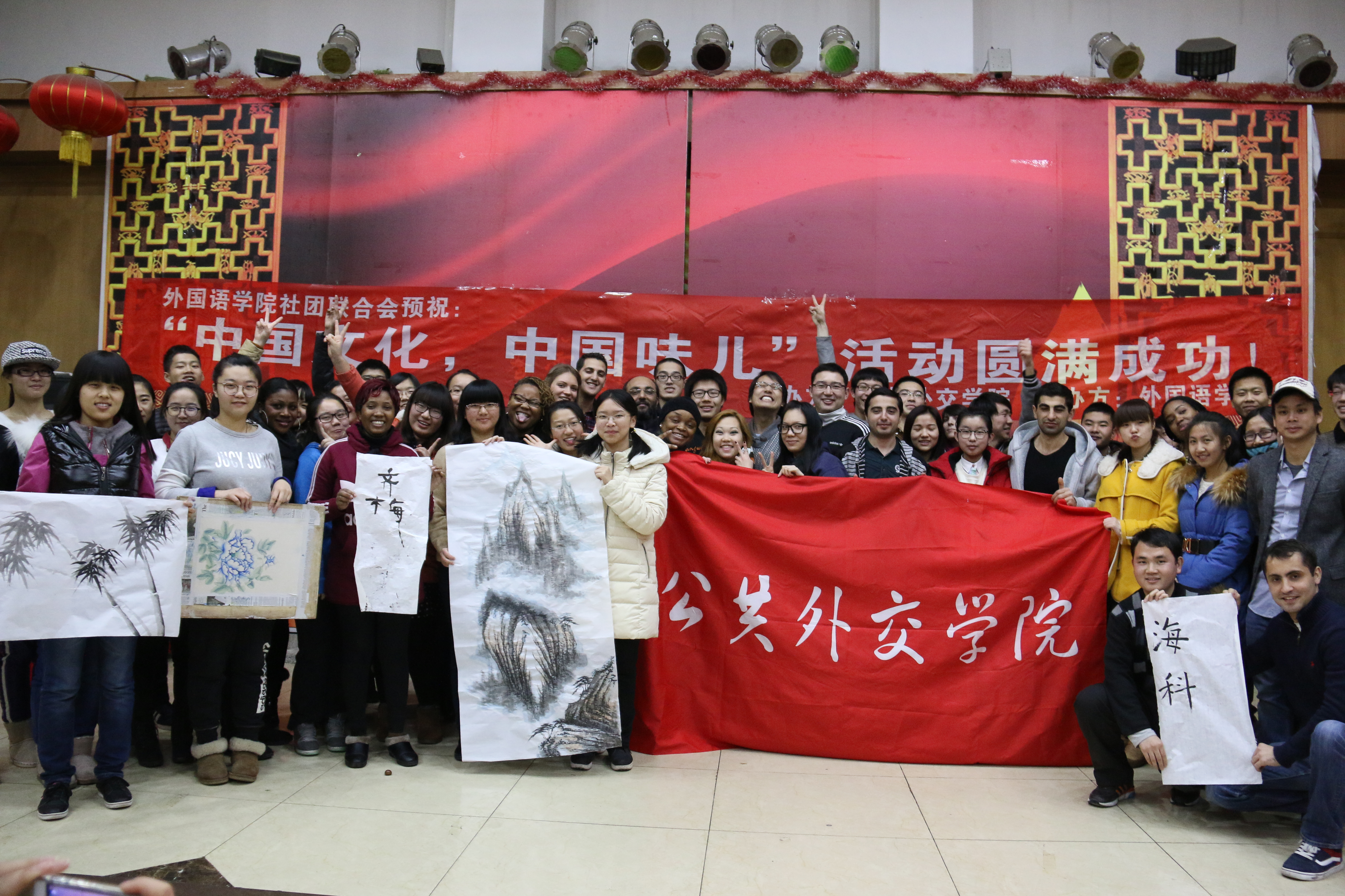 中外师生和外国语学院的同学在友谊会馆一楼开展了“中国文化中国味”主题活动。大家在一起包饺子,学写毛笔书法,欣赏中国绘画。