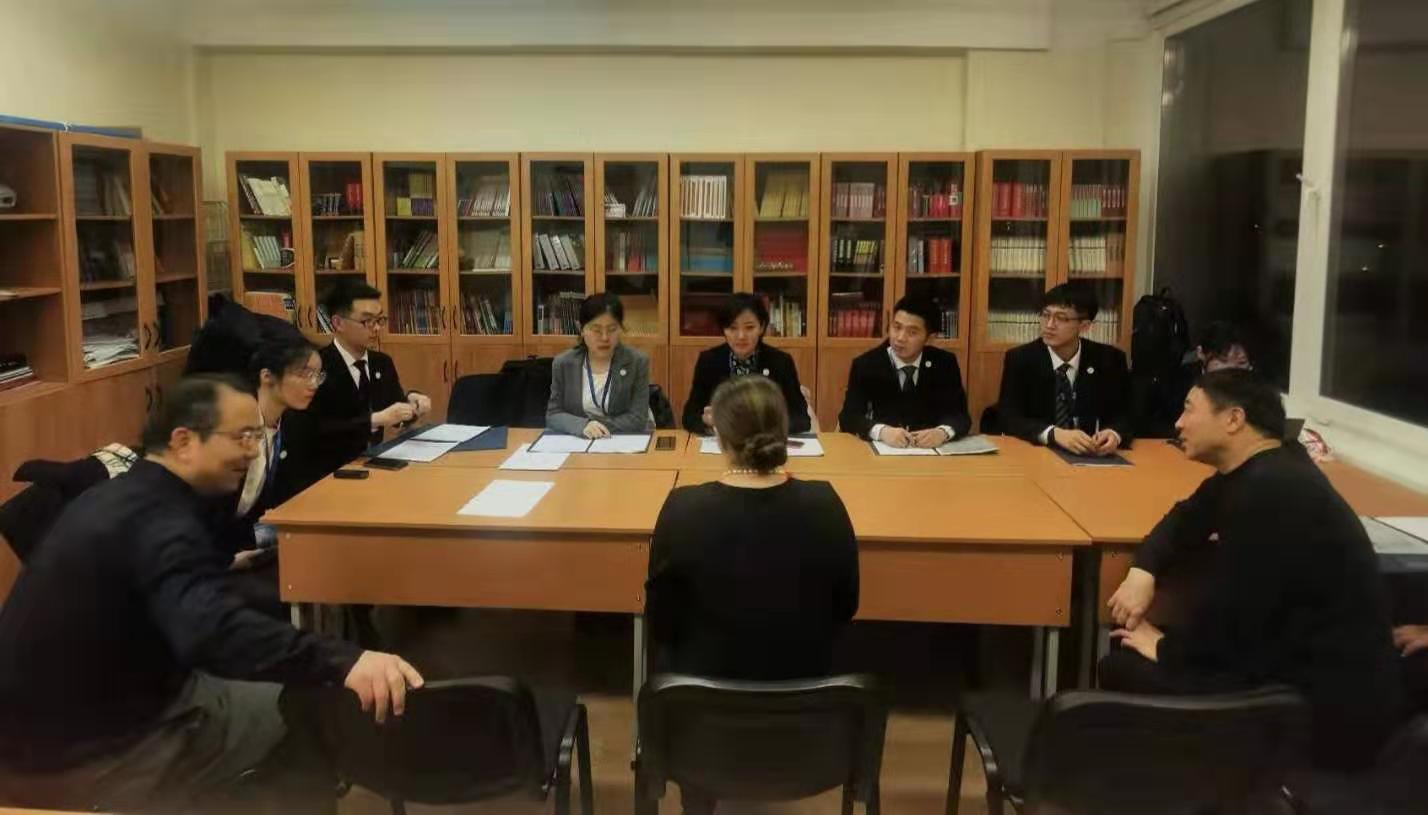 “俄罗斯孔子学院建设面临的挑战和未来发展方向研究”项目调研团组在乔蕊老师的带领下,赴莫斯科大学孔子学院开展实地调研和学术交流活动,莫斯科大学孔子学院俄方院长塔吉亚娜女士(Татьяна Николаевна Бухтиярова)和林百学院长热情接待调研团组访问,薛世彪老师、逯凤勤老师、贺金华老师也同代表团成员进行了探讨交流。