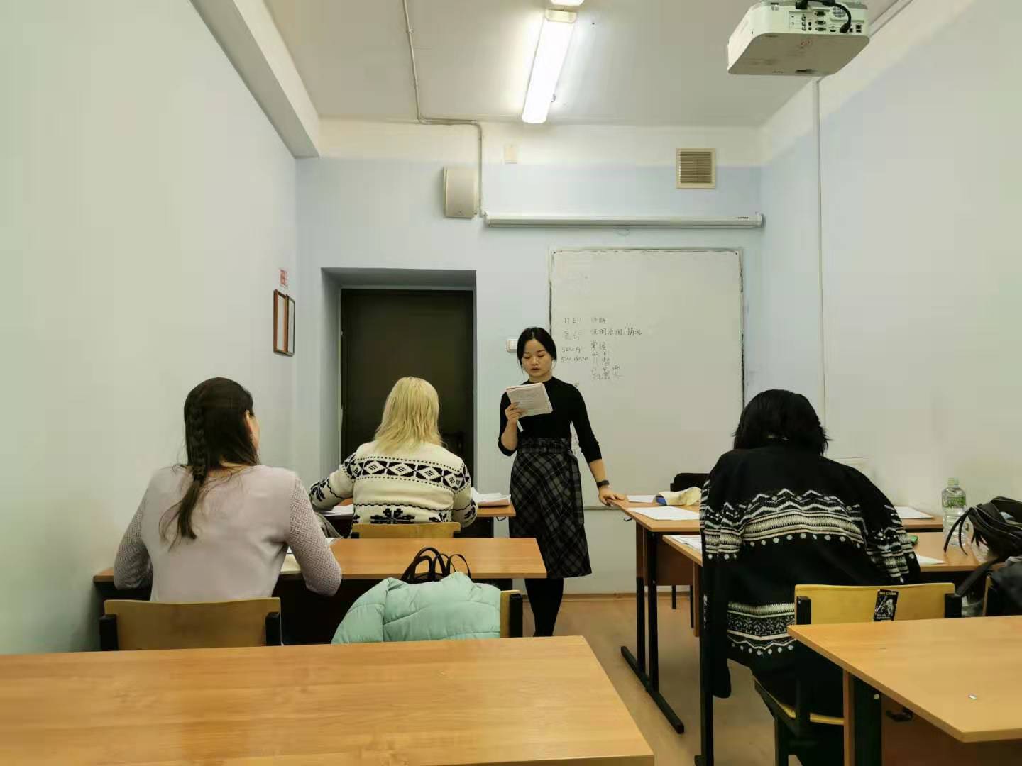座谈结束后,调研团组分两个小组观摩莫斯科大学孔子学院的课堂教学,分别是逯凤勤老师讲授的商务汉语和贺金华老师讲授的中文报刊阅读。两位老师教学经验丰富、了解俄罗斯学生的特点、讲授内容生动形象,课堂气氛活跃。