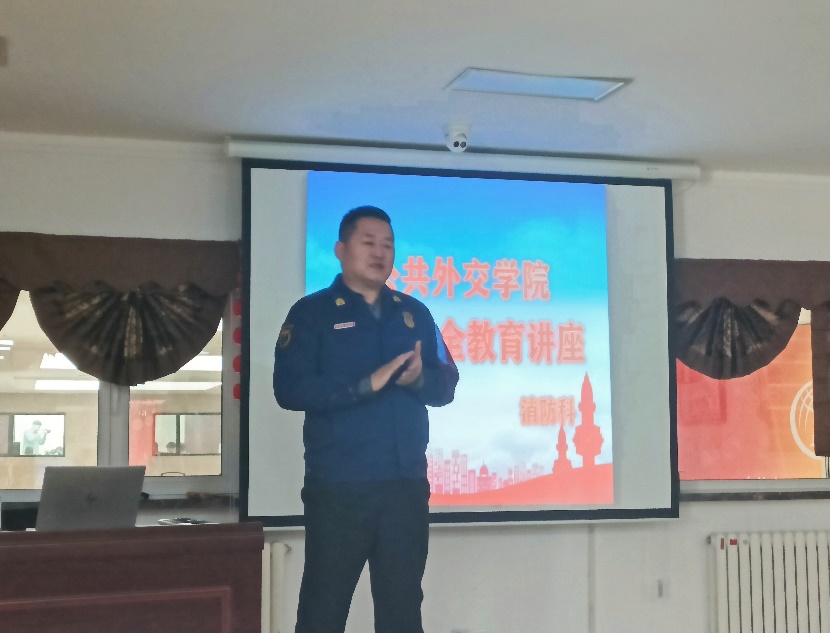 于洪生副院长在培训会开始时强调,此次消防安全教育培训讲座的目的,旨在提高学院广大师生的消防安全意识、掌握消防自救知识及技能,创造安全稳定的学院环境。