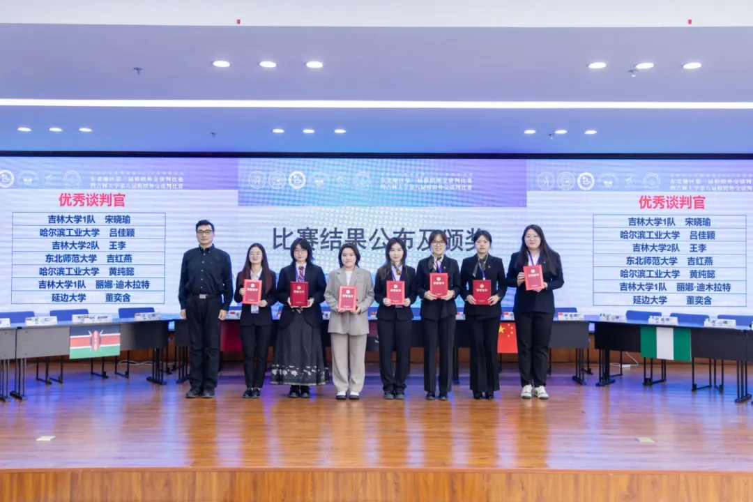 1队、延边大学代表队、大连外国语大学代表队获得荣誉团队奖。同时,宋晓瑜等7名选手获得“优秀谈判官”称号、卢君彭等3名选手获得“优秀新闻官”称号、刘相楠等7名选手获得“优秀记者”称号。