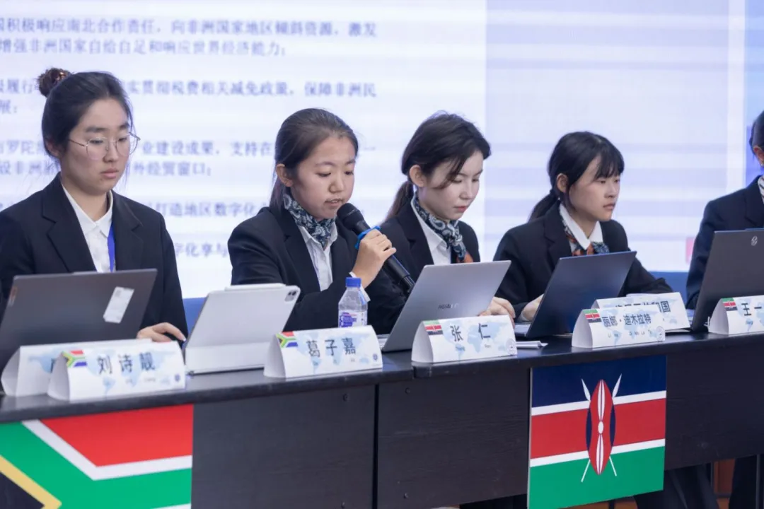 学子同台竞技。参赛队伍设定为中国、南非、尼日利亚、安哥拉、埃及、摩洛哥和肯尼亚七个立场,并在现场谈判与新闻发布会两个环节中设置了谈判官、新闻官、记者三类参赛角色,模拟谈判场景,让各校代表在谈判中切身体会合作与挑战并存的国际局势和外交外事工作的复杂与艰辛。