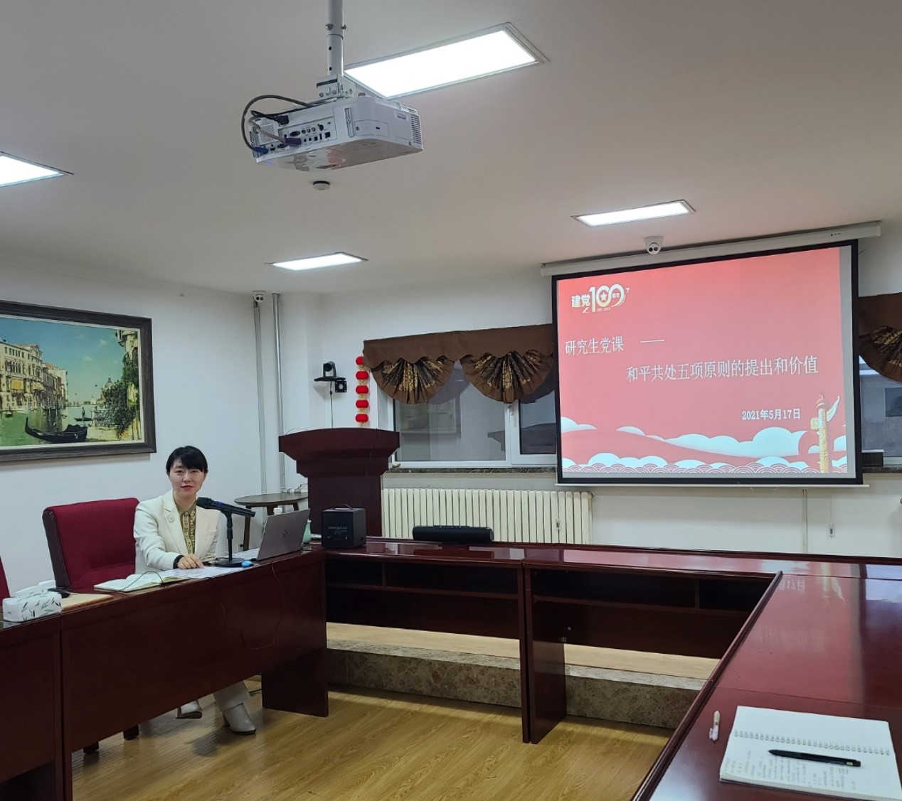 和国家发展与安全研究院硕士、博士研究生讲授了题为《和平共处五项原则的提出和价值》的党课。