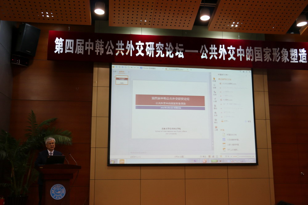 在主题发言中,围绕“公共外交中的国家形象塑造”这一主题,李熙玉教授、赵可金副教授和刘德斌教授分别以“韩中公共外交的扩散和深化”和“崛起困境、合法性与国家形象:中国的实验”、“世界秩序、中国角色与公共外交”为题作了主题发言。李熙玉教授回顾了前三届中韩公共外交研究论坛所取得的重大的共识,提出中韩公共外交需要推向深入。中韩两国不仅需要打造利益共同体,也需要形成人文共同体,寻求共同的身份认知。赵可金教授提出应该反思中国公共外交研究存在的一些问题,确立基于社会网络之上的公共外交研究范式。中国公共外交开展面临的主要问题在于“崛起困境”,要摆脱这一困境,需要在“道”、“术”、“法”、“器”四个方面进行努力。刘德斌教授认为世界秩序正在经历历史性的变化,中国在新一轮世界秩序变革中扮演了非常重要的角色,以新的心态融入世界是中国公共外交目前需要解决的问题,也是中国公共外交发展的方向,讲好中国故事的前提是要了解世界的故事。