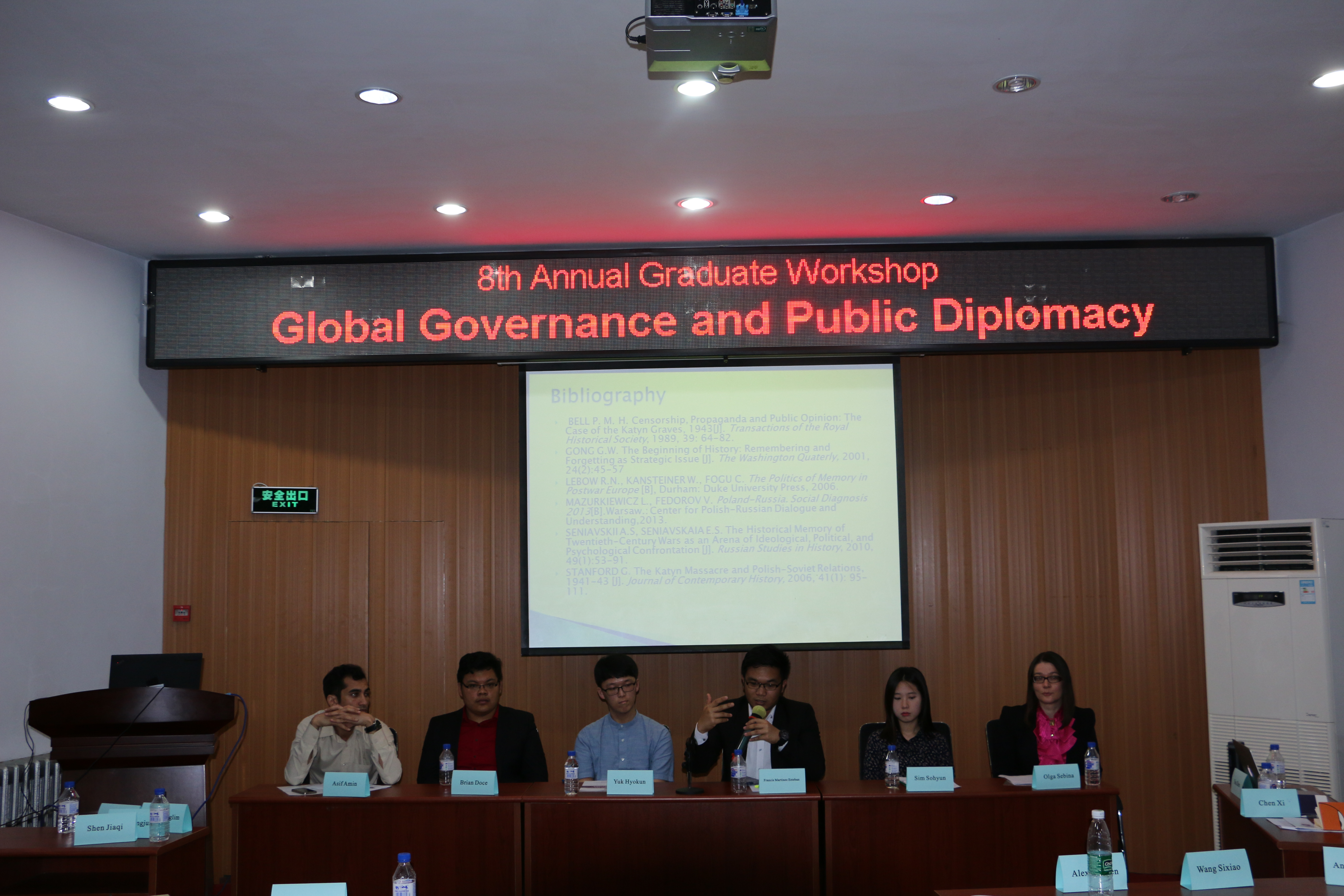 在接下来的分组发言中,来自各校的近二十名学生围绕“全球治理理论与实践”、“公共外交与危机管理”和“中国、软实力和对外政策”等三大分议题进行了发言,讨论的议题涵盖全球环境治理、全球卫生治理、全球金融体系、中国对阿富汗政策、宗教公共外交、领土争议、中国和平崛起、软实力产业建设、媒体传播等。除传统的全英文分组之外,本届论坛另外设有两场中文分会场,吸引了来自各校的中外学生用中文发表了他们的最新研究成果。