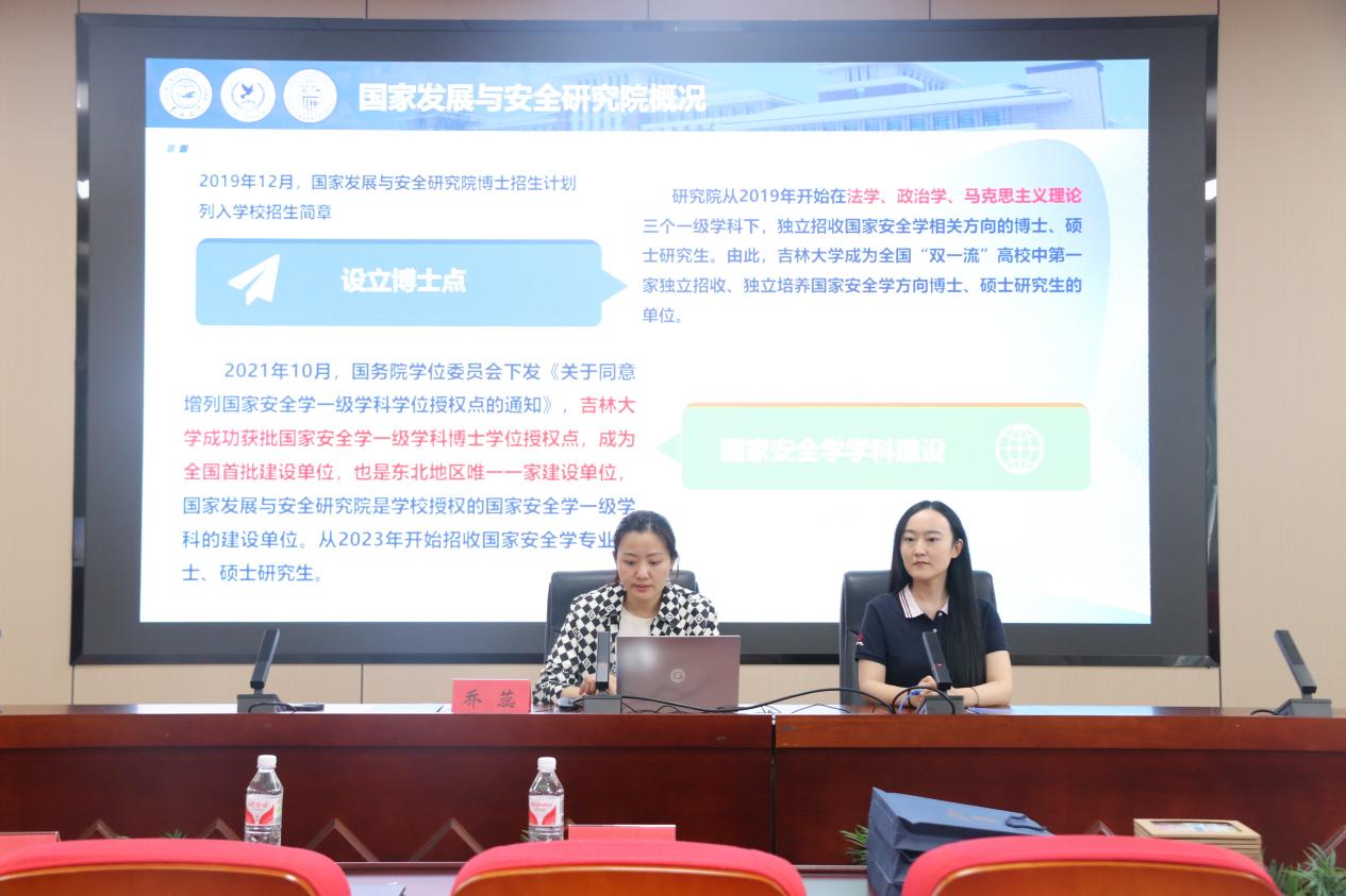 、国家发展与安全研究院的基本情况,包括学科发展建设、师资队伍建设、平台建设、科研成果以及学生培养等方面,特别是围绕学院与研究院的招生情况、师资配置、开设课程和就业去向等进行了详细的说明,鼓励大家报考外交学专业和国家安全学专业。学院高度重视研究生招生与培养工作,教学教辅团队相互支持,研究生教学科研规范有序,校园生活设施齐全,课余活动丰富多彩。