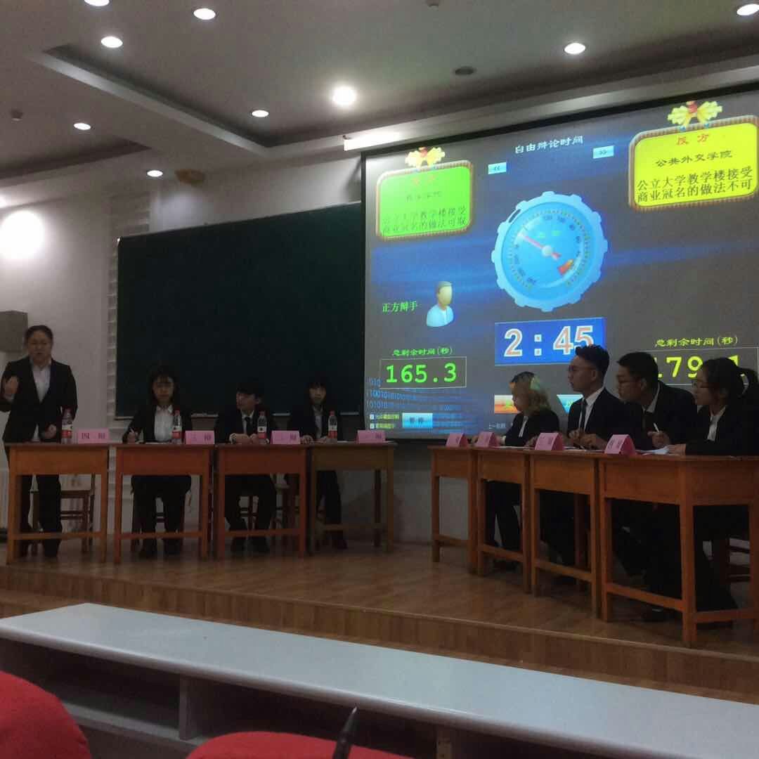 第二十七届“先锋论坛”大学生辩论赛,10月29日下午13:30分在经信F阶教室,首场与数学学院辩论队围绕“公立大学教学楼接受商业冠名的做法是否可取”的主题展开了辩论。