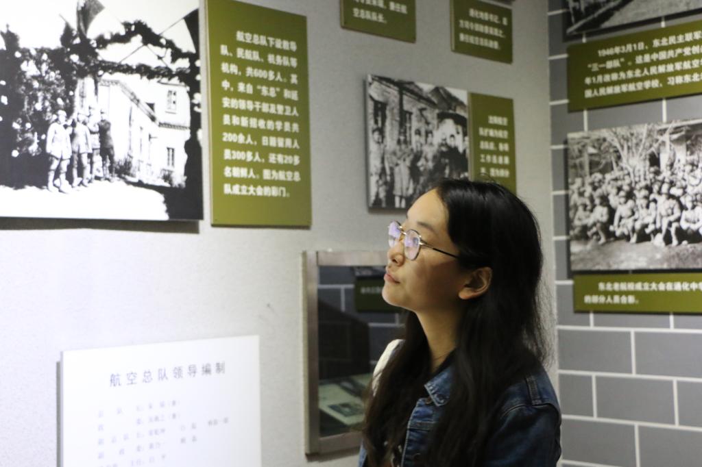 14时20分一行人到达校园,参观了中国人民解放军空军航空大学校史馆,了解了该学校建校历史,以及为了航空航天事业,老一辈航天工作者的辛勤付出。大家在讲解员带领下,了解了许多航空航天方面的知识,也感受到了军人对航天事业的热爱,对祖国的热爱与担当。
