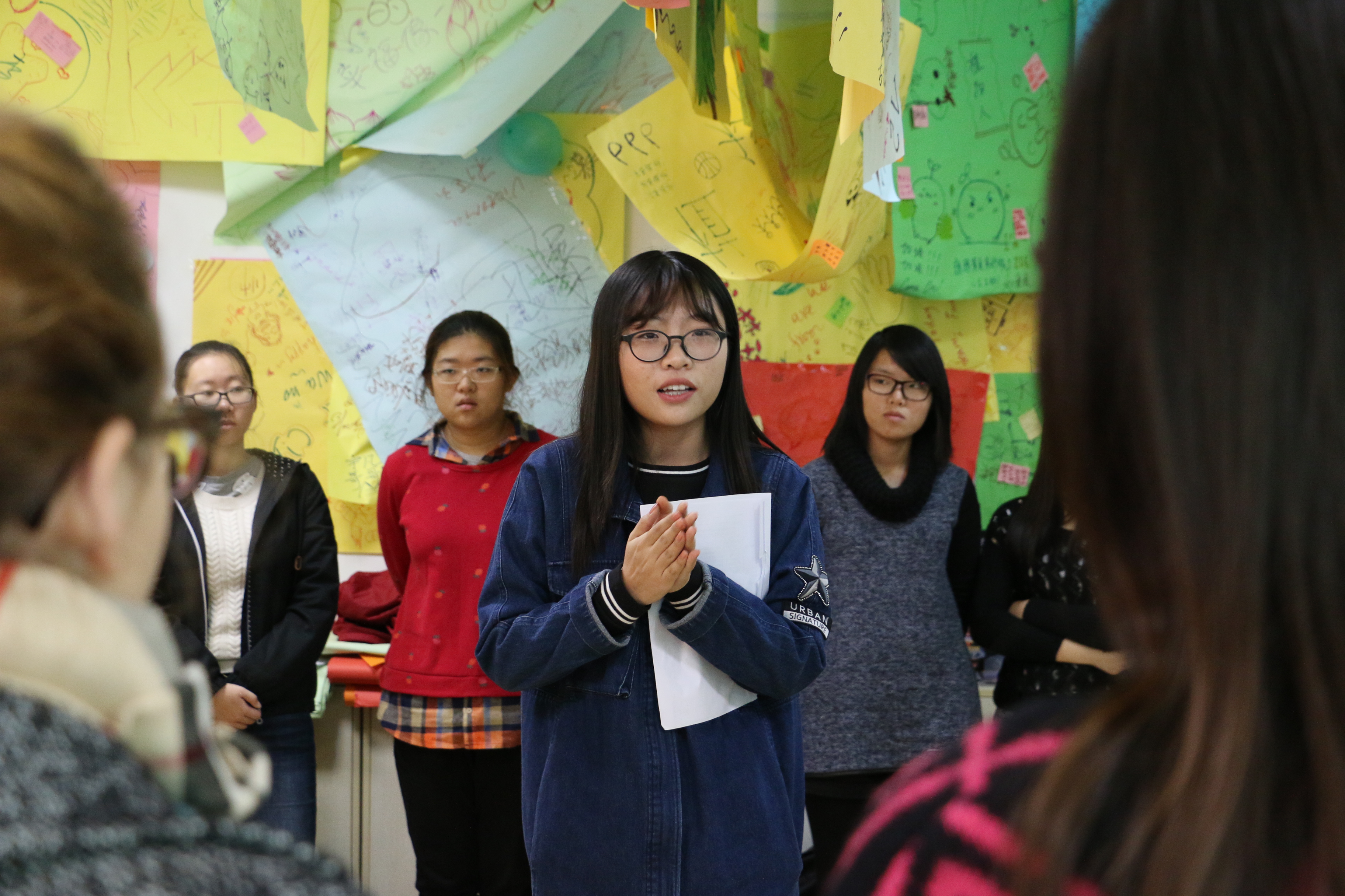 学院的朋辈心理辅导员崔嘉禾同学首先介绍了本次团体心理辅导的主题,并对同学们做出寄语:全身心参与到活动中,希望大家能在今天的团体心理辅导中收获快乐和友情,并能感悟到一些道理。活动伊始,朋辈心理辅导员带领同学们体验了“一分钟鼓掌”,“一分钟鼓掌”告诉大家要客观对待大学生活现实与预期的差异。我们每个人对自己的大学生活都有着不同的预期,但真正进入大学之后,我们则体会到预期和现实之间是有差别的。要正确认识这种差别,为自己的大学生活设计一个合理的目标,并通过自己的努力去实现。接着,大家在朋辈心理辅导员的带领下进行了“无家可归”和“温柔体操”两个活动,大家从活动中认识到了团队的重要性。随后的“信任之旅”和“集体登陆”等活动更加活跃了现场气氛,同时检验了团队的协作能力。最后,团体心理辅导活动在大家共同绘制团体树的欢笑声中圆满结束。
