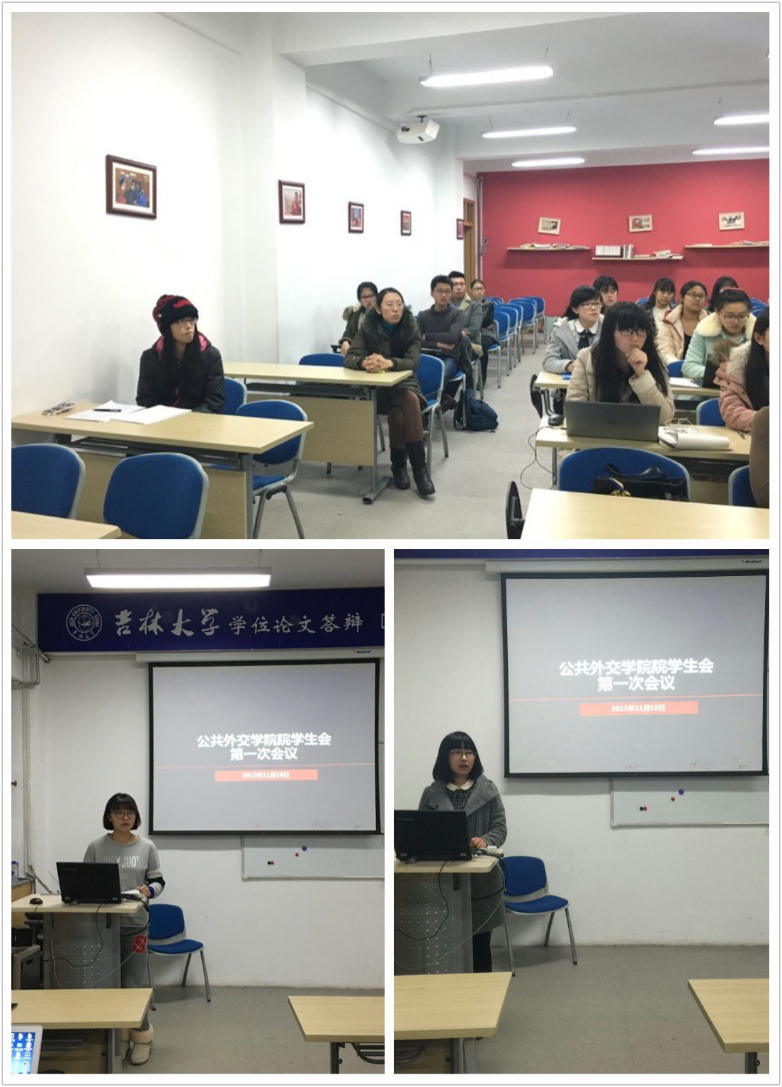 团委、学生会于友谊会馆小报告厅举办首次会议。团委、学生会各部部长的部门在会议中进行了简要的部门介绍,使各部的大致工作方向与工作形式为各位部员所知。