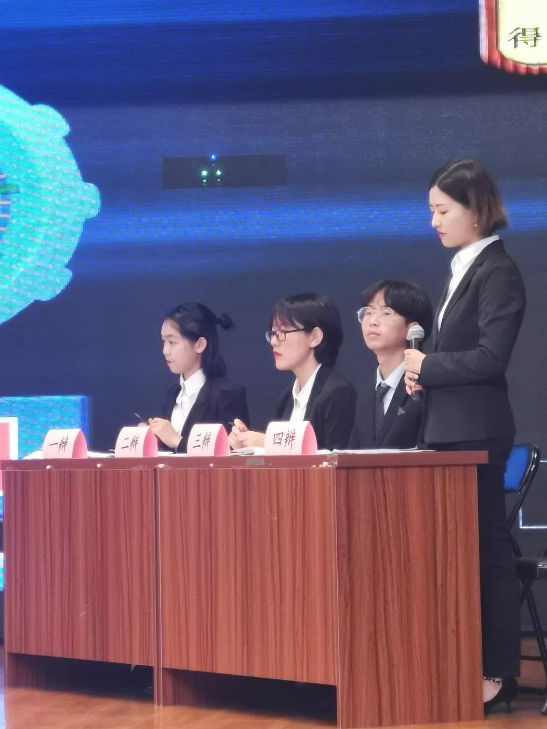 辩论队派出了全明星阵容——一辩辩手丁思然、二辩辩手刘美彤、三辩辩手杨适、四辩辩手石韵章。
