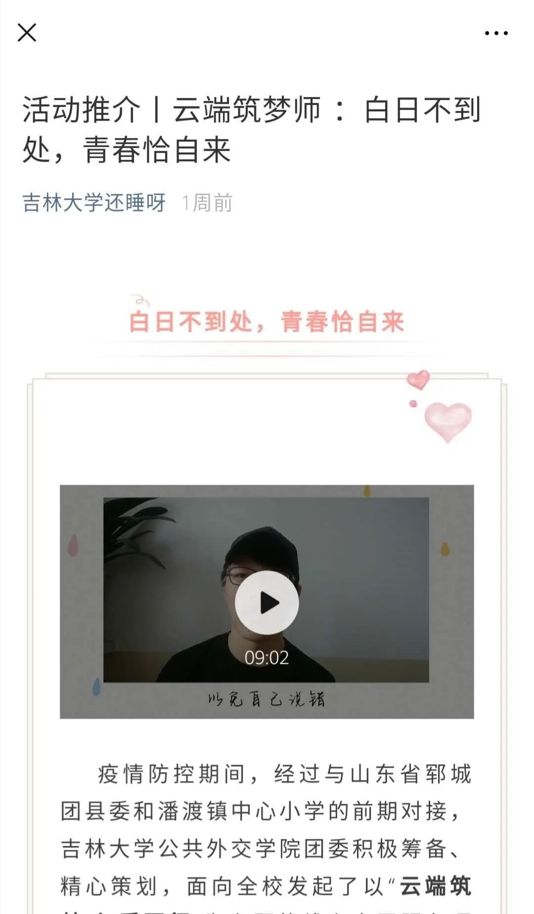 2020年,突如其来的新冠肺炎疫情打乱了人们生产生活的节奏。秉承着“青春助力·快乐成长”的宗旨,经过前期与山东省郓城团县委、山东省郓城县潘渡镇中心小学和吉林省安图县桃园村的对接与筹备, bilibili下载