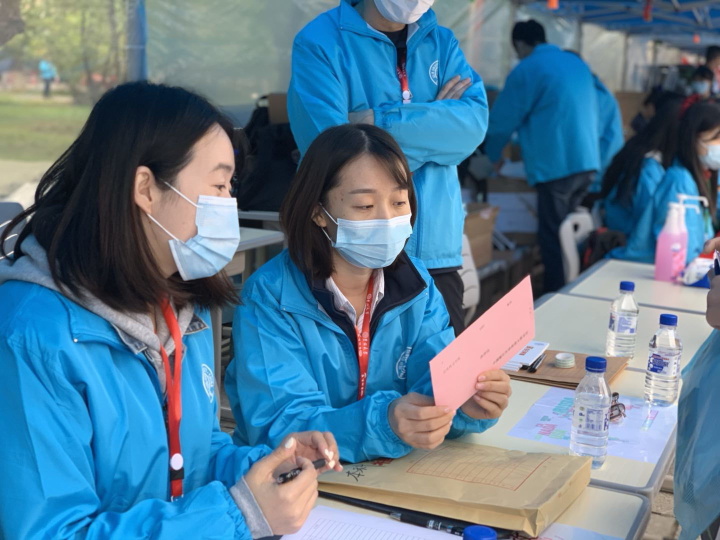 迎新现场,检查学院迎新准备情况,并对迎新志愿者表示亲切慰问。老师们还对此次迎新工作进行了详尽而完备的指导,提高了本次迎新工作的效率,也极大地鼓舞了志愿者们的工作热情。