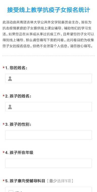 委员会主办的“云端筑梦,与爱同行”线上一对一志愿服务活动第三期重新起航,招募了来自34个学院的163名吉大志愿者,为山东省郓城县潘渡镇、山东省临沂银河小学、河北省邯郸市肥乡区王庄小学以及吉林省安图县桃园村的154名孩子提供为期两周、每天一个小时的线上课业辅导,除此之外,第三期活动还开通了专门为一线抗疫家庭子女提供线上学习辅导的服务,根据报名情况为7名一线抗疫家庭子女提供了辅导。用真心与爱呵护孩子们通往星辰大海的征途,以青春力量助力疫情防控和乡村教育发展。