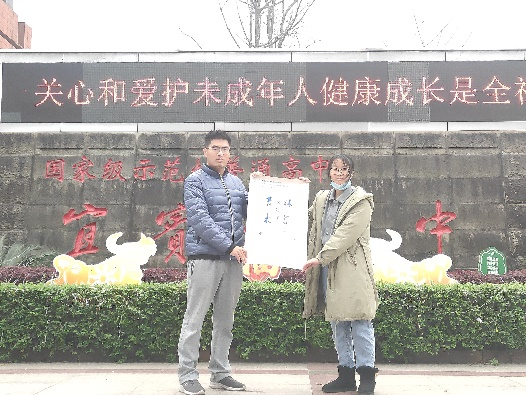 2020级本科生曾蓓在宣讲后同学们分发纪念品