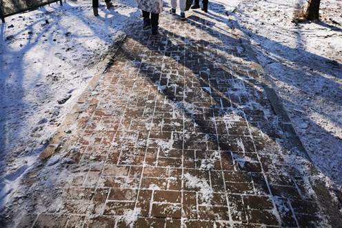 16日飘了一天的中雪将人行道覆盖得严严实实,一夜的低温使有些地方已经结成了冰凌,需要除雪铲、铁锹、扫把等工具一起配合才能全部清扫干净。同学们有条不紊、积极合作、一鼓作气,通过一个小时的不懈努力将该路段的积雪全部清除。